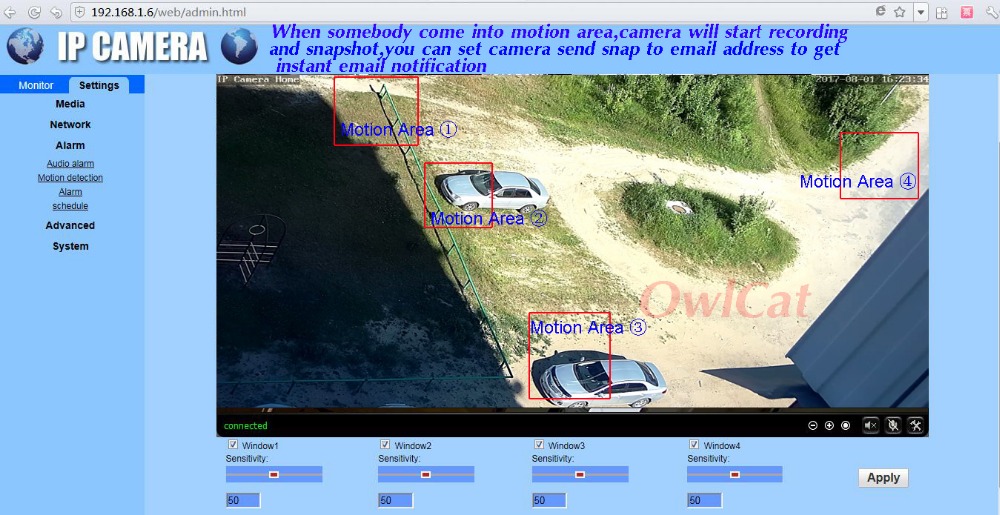 8. ПоддержкаОбнаружение движенияЗапись и сигнализация электронной почты.