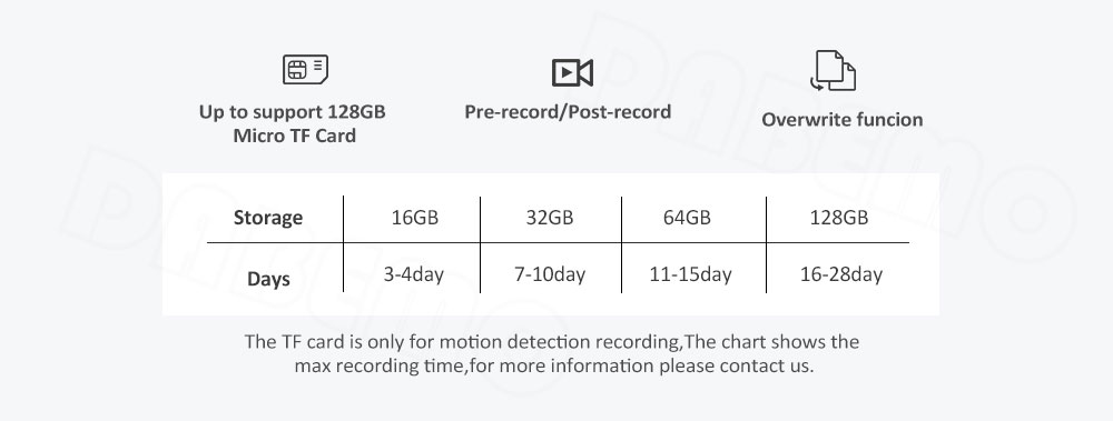 * H.264 новый дизайн хранения, карта памяти TF карта и Облачное хранилище ниже, более стабильная и более прочная;