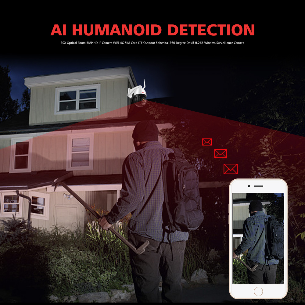 С улучшенной функцией обнаружения гуманоидов камера разумно обнаружит человека и уменьшает 95% ложных тревог, которые вызваны дождем, ветром, растениями и т. Д., Огнести тревоги отправляют изображения в указанный почтовый ящик, изображения загрузки тревоги и видео на сервер FTP, тревога Напишите изображения и видео на TF Card, The Alarm Message Push.