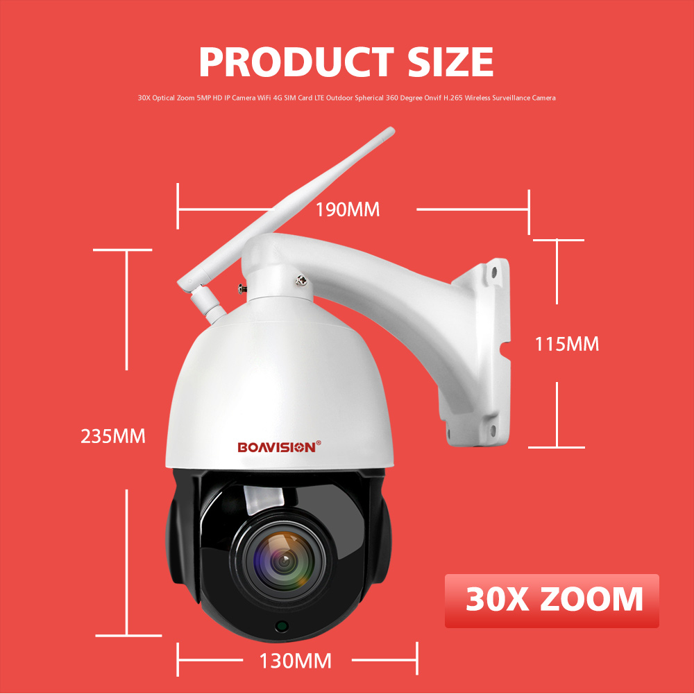 5 МП 30X зум (20X оптический зум + 10X цифровой зум) Беспроводная PTZ купольная IP камера WIFI наружная Водонепроницаемая 80 м ИК Ночное видение.