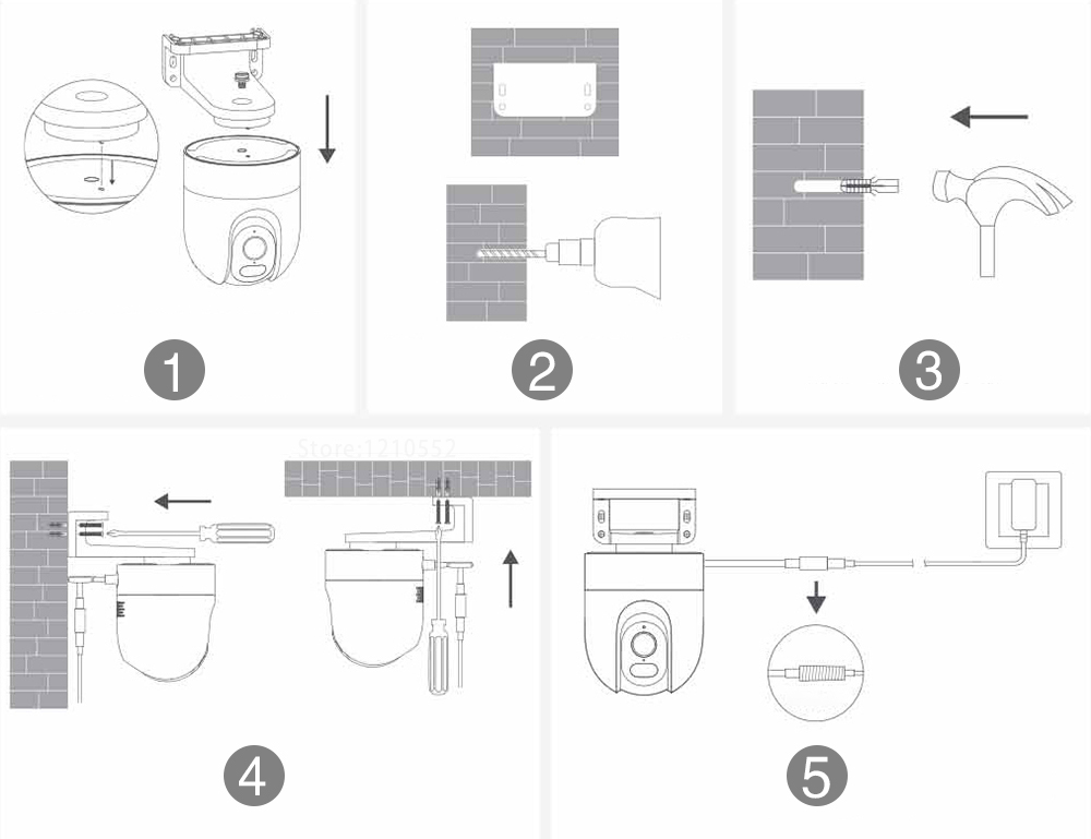 ① Точка позиционирования монтажного кронштейна вертикально встроена в отверстие для позиционирования камеры.
