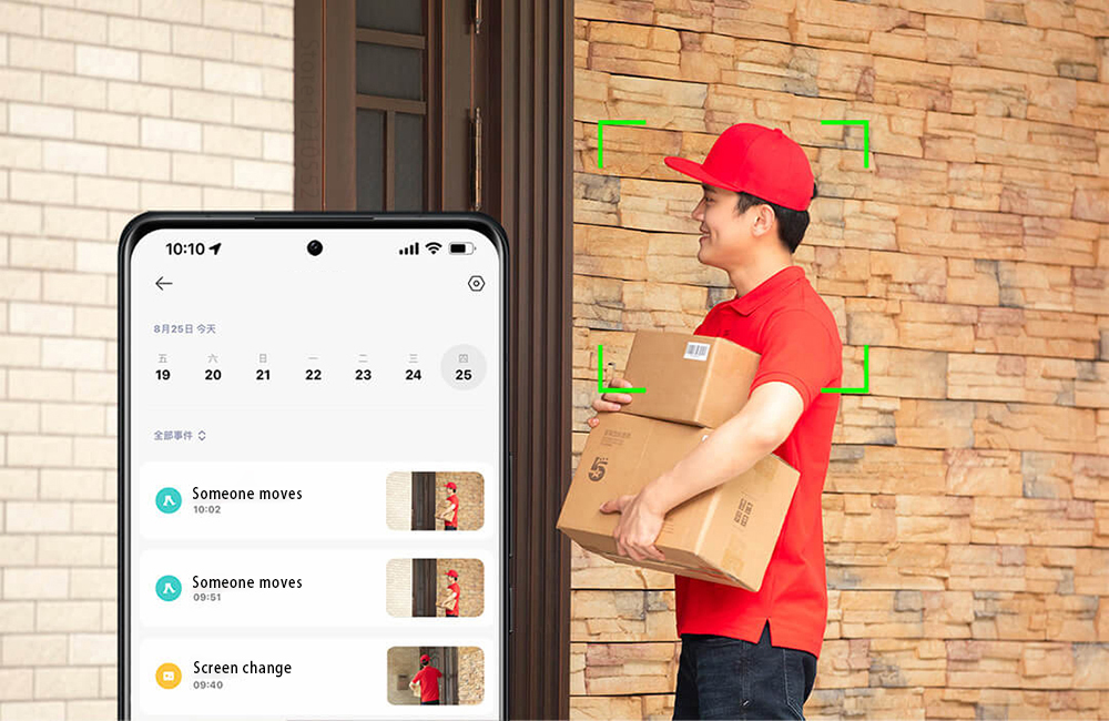 Используя Алгоритм распознавания человеческой фигуры нового поколения AI, когда на экране появляется человеческая фигура, автоматически записывается тревожное видео и на мобильный телефон отправляется напоминание.
