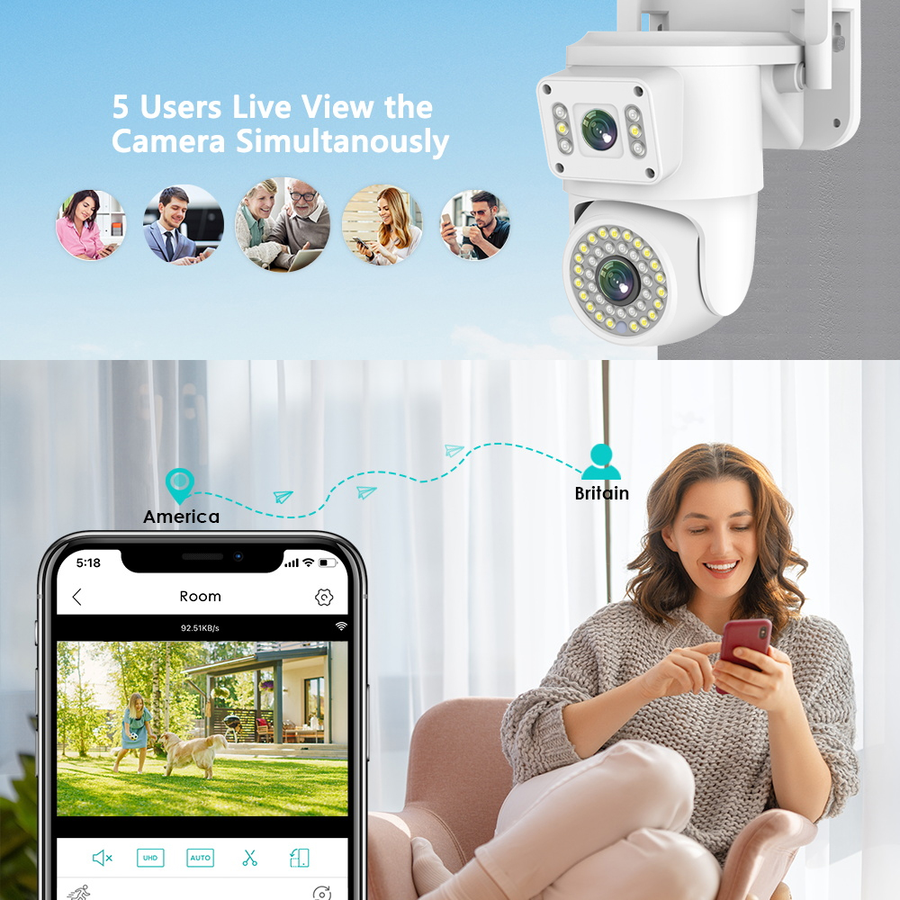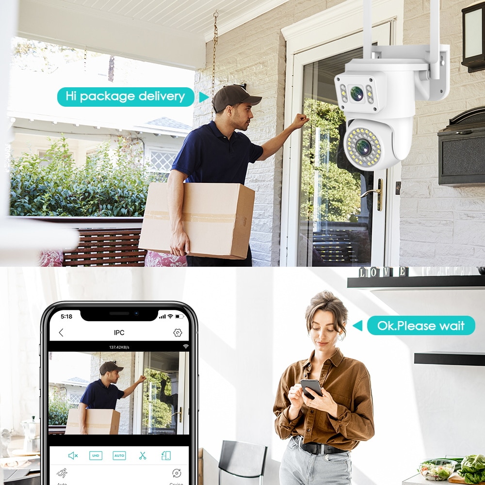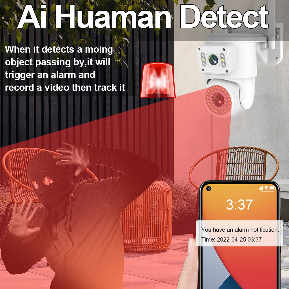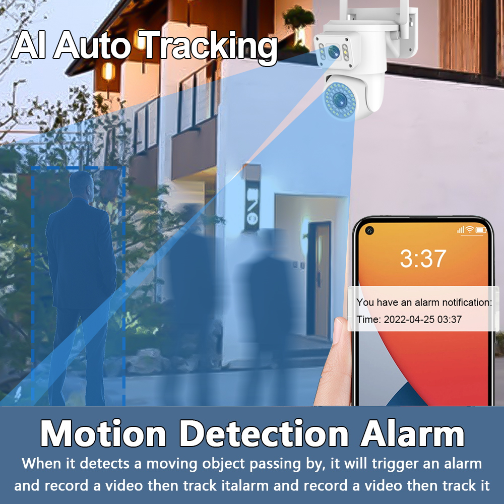 После блокировки цели камера автоматически отрегулирует вращение облачной платформы. Отслеживание движущихся объектов, автомобилей, домашних животных и людей и Отправка уведомлений на смартфон.