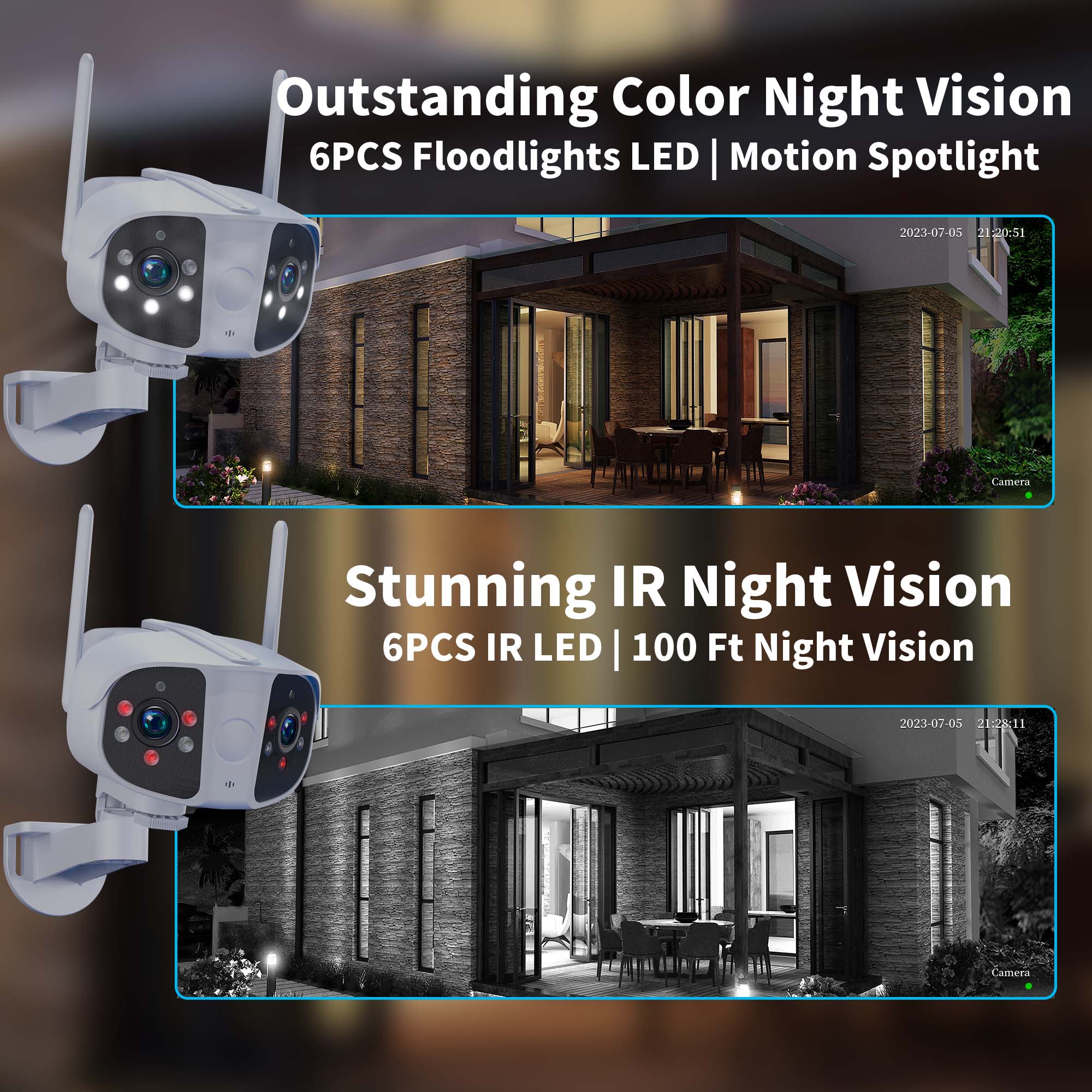 -Оснащенный 4 белыми светодиодами и 4 высокоэффективными инфракрасными светодиодами, он может предоставить вам красочные Эффекты изображения высокой четкости независимо от дня и ночи.