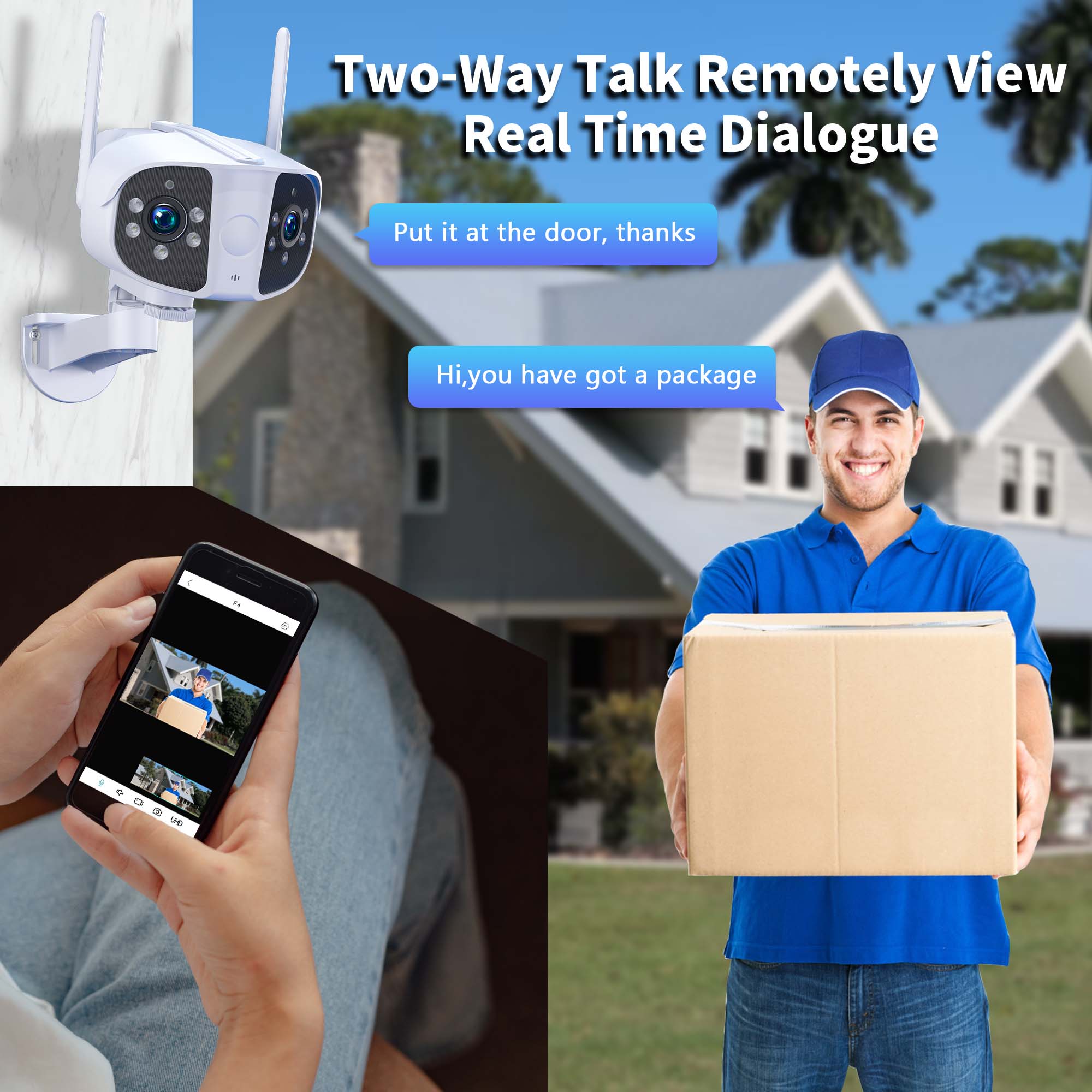 -Эта IP-камера со встроенным улучшенным микрофоном и динамиком, вы можете предупреждать воров, проверять посетителей у вашей двери или общаться напрямую с семьей или друзьями. Защита вашей семьи и имущества от вреда только с помощью приложения для телефона. Обеспечьте вам душевное спокойствие и круглосуточную защиту.