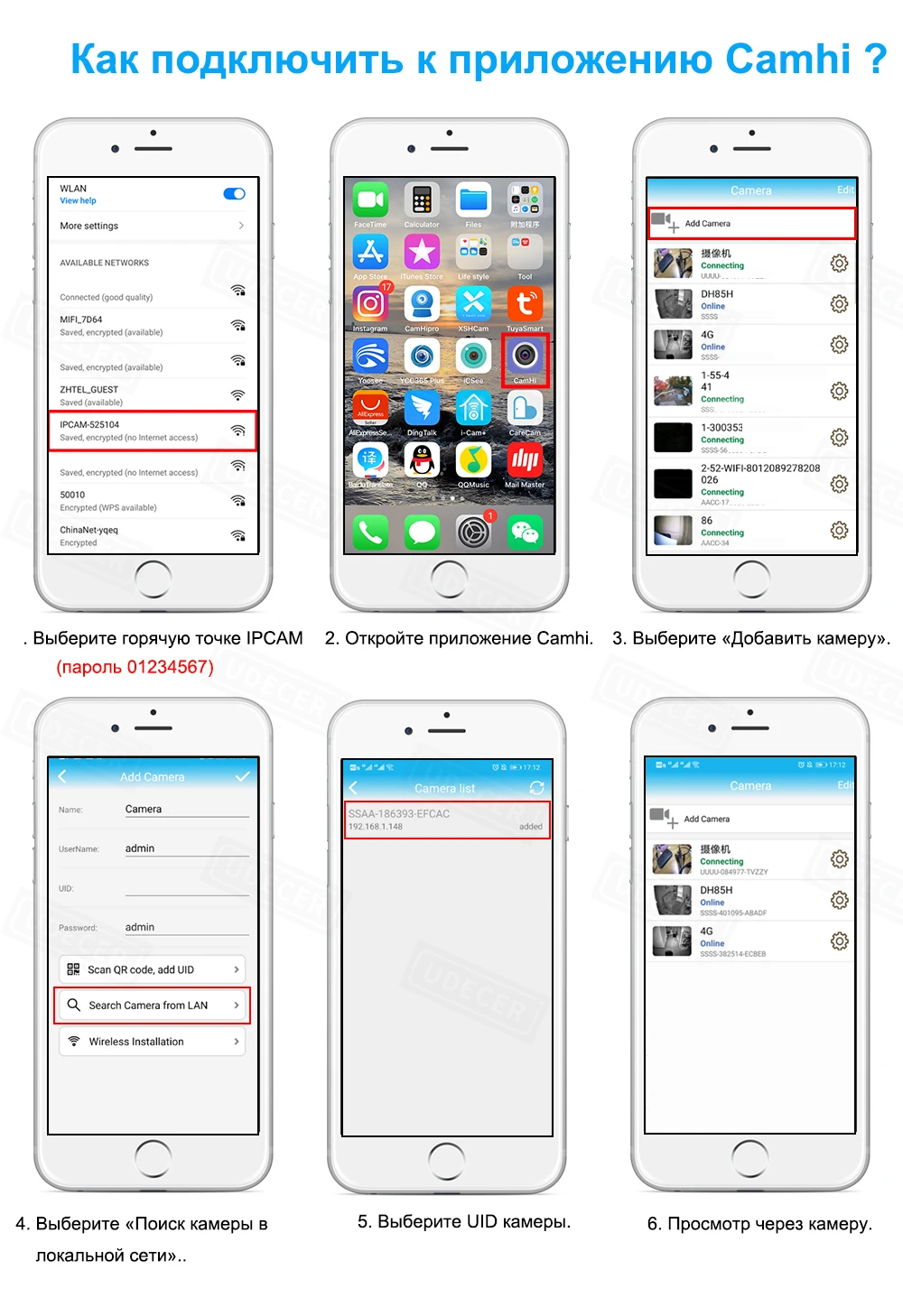 Вашу камеру можно подключить к телефону и ПК. Если вы хотите подключить камеру к ПК, вы будете использовать UID камеры, чтобы добавить ее в программное обеспечение HiP2P.
