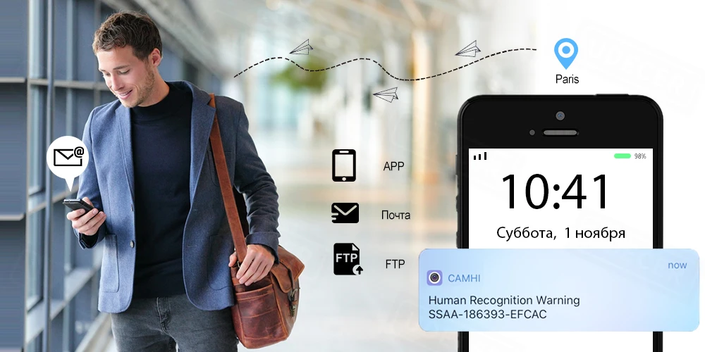 С функцией самостоятельного обнаружения движения, камера может обеспечить вам защиту на 24/7. При обнаружении движения у вас будет мгновенное уведомление о том, что кто-то приближается к вашему дому.