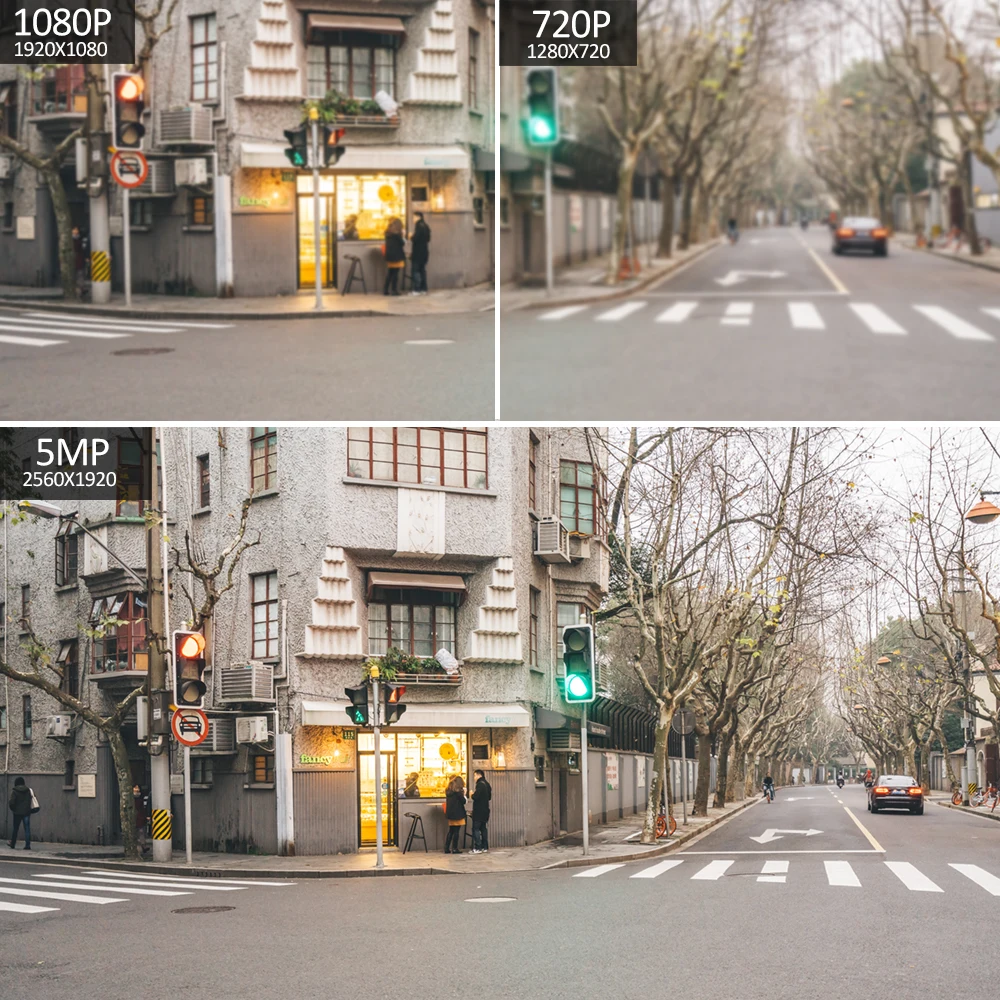 Вы можете выбрать охранная IP камера с высоким разрешением 2560x1920 (5 миллионов пикселей) или настоящим 1080p Полный HD для того,чтобы снимать критически четкое видео и видеть более ценные детали для идентификации людей, транспортных средств и других объектов в течение всего дня.