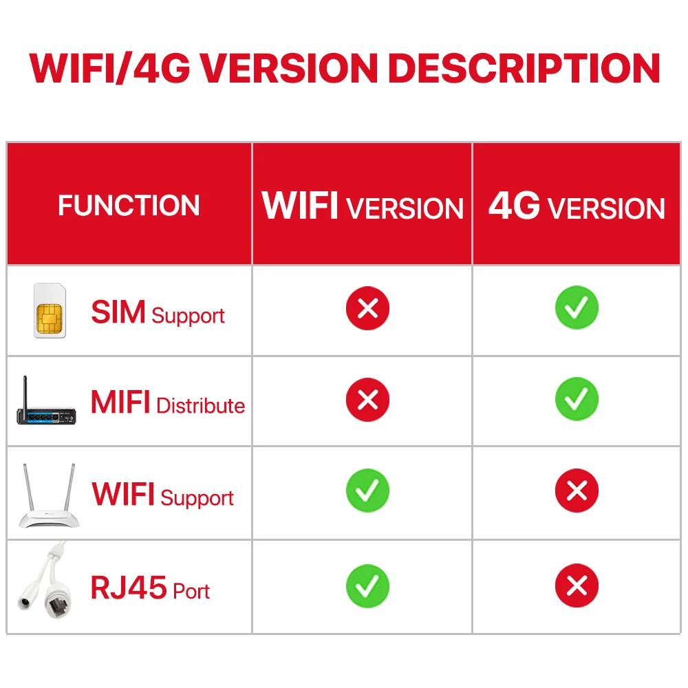 Камера с 1 антенной для версии WIFI и с 2 антеннами для версии 4G, вы можете выбрать нужную версию в соответствии с условиями использования.