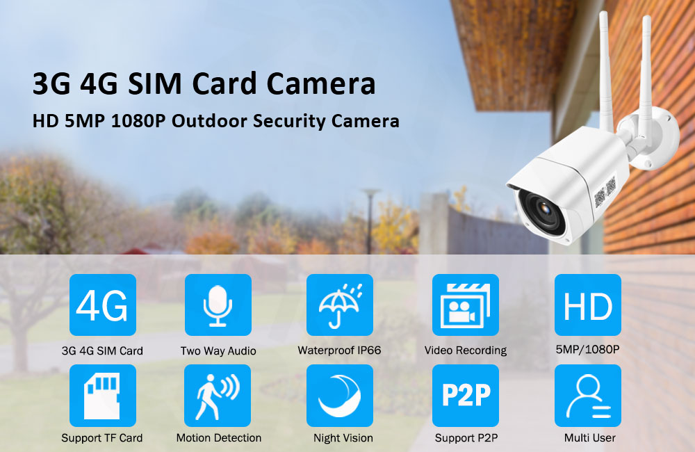 Умный и изысканный дизайн, хорошее качество Применяется HD Сенсор и чипсет, мощные возможности передачи данных Поддержка HD 5MP 1080P высокое качество Разрешение; 2.0MP / 5.0MP HD 3G/4G сим-карты пуля Камера; Поддержка 3G/4G, Поддержка возможность работы в режиме AP (как точка доступа); Поддержка до 128G TF карту памяти Поддержка с подкладкой аудио (встроенный микрофон и Динамик); 3,6 мм объектив с фиксированным фокусным расстоянием; Металлический Материал корпуса, открытый Применение, Водонепроницаемый IP66; 10 шт. SMD Инфракрасные светодиоды, ночное видение расстояние возможностью погружения на глубину до 30 м; Поддержка P2P, просмотр и в любом месте и в любое время; Элегантный контур и легкая установка; Приложение для android и ios и профессиональное программное обеспечение для ПК CMS; Приложение: для iPhone и iPad Pro