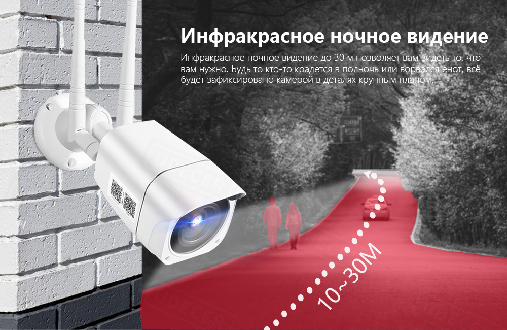 Инфракрасное ночное видение до 30 м позволяет вам видеть то, что вам нужно. Будь то кто-то крадется в полночь или ворвался енот, всё будет зафиксировано камерой в деталях крупным планом.