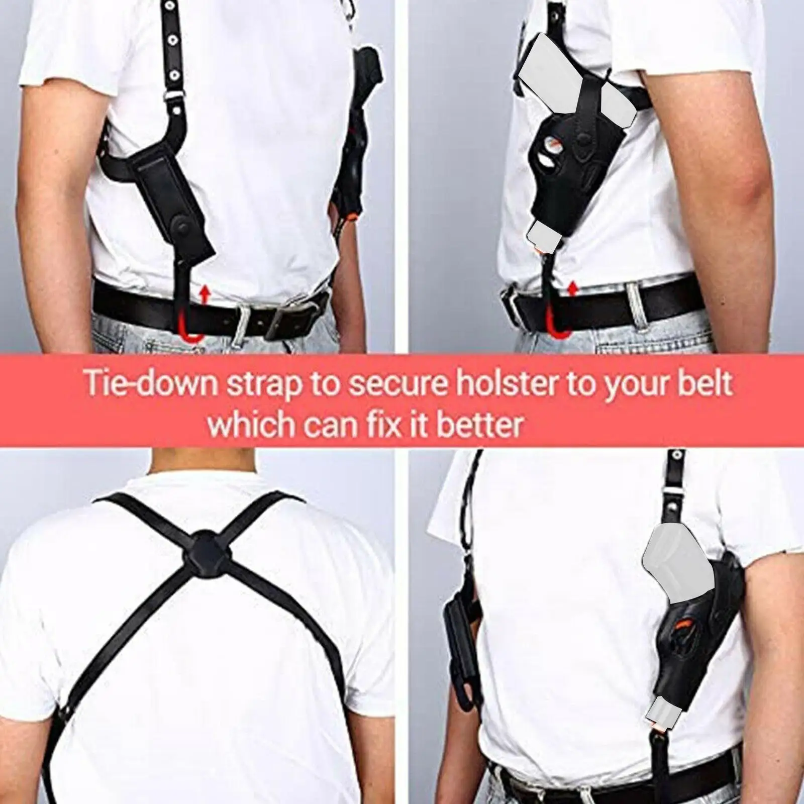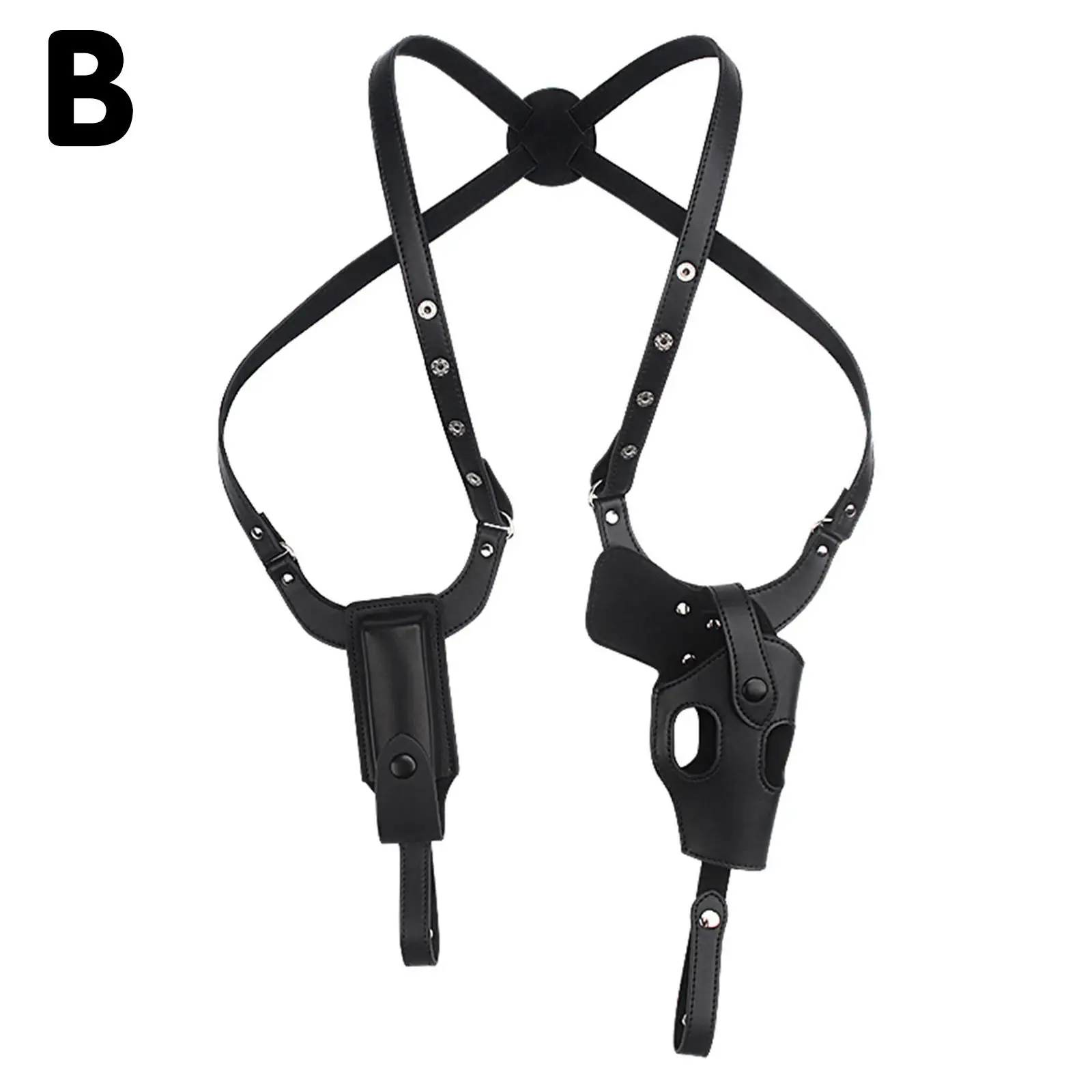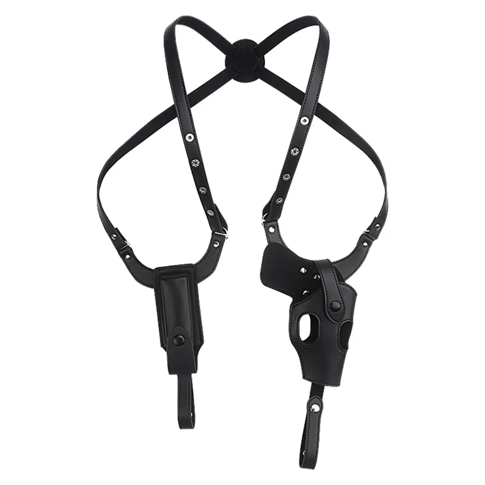 3. Разработан в стиле двойного плечевого ремня, очень прочный и стильный, украшен заклепками. Независимо от того, что вы носите, вы можете быстро вытащить пистолет из подмышки.