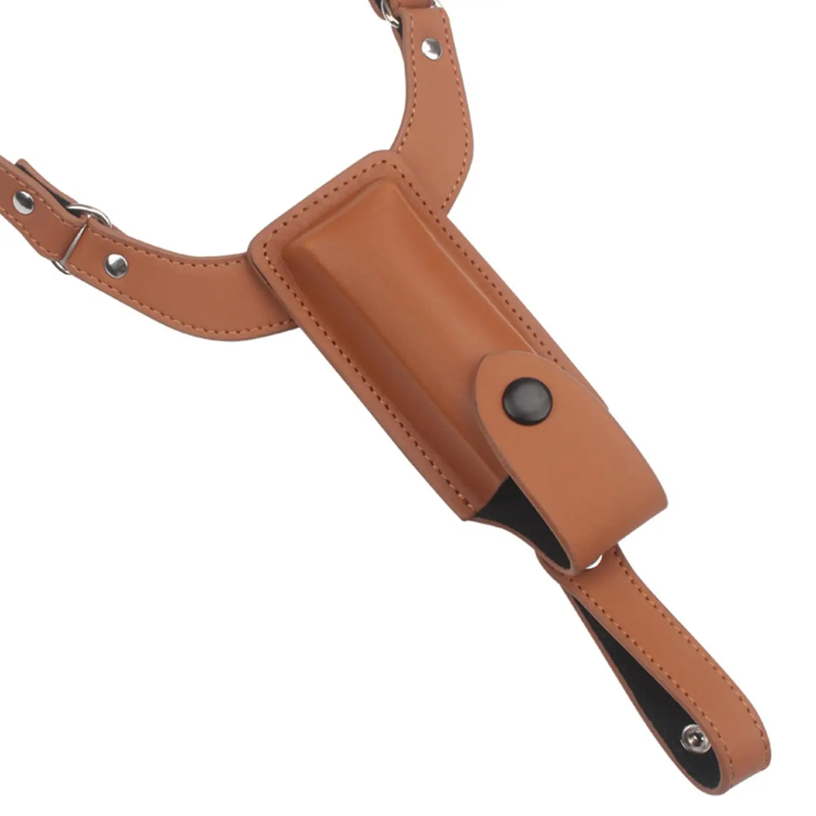 1. мужские Регулируемые плечевые ремни из воловьей кожи в стиле панк, сумка через плечо, застежка на пуговицу, открытый кожаный зажим для чехла. Два регулируемых ремня для крепления кобуры к ремню.