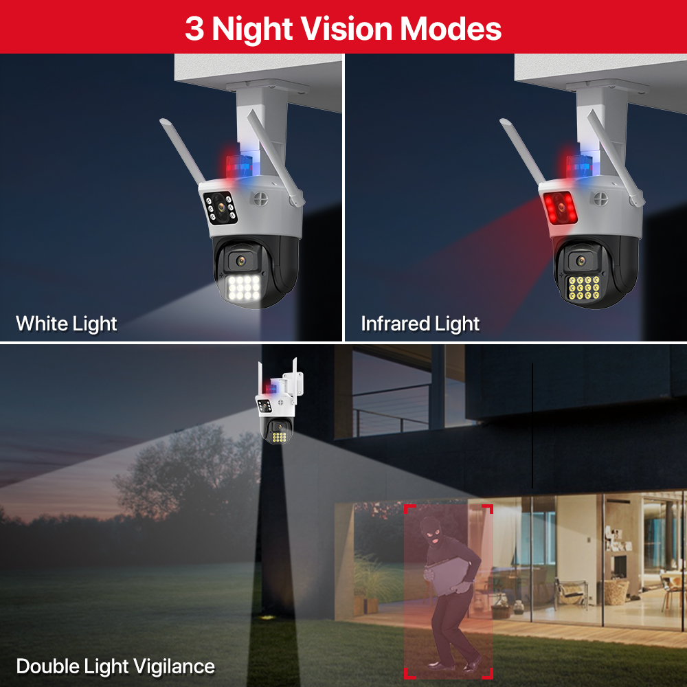 -Оснащенный 12 белыми светодиодами и 6 высокоэффективными инфракрасными светодиодами, он может предоставить вам красочные Эффекты изображения высокой четкости независимо от дня и ночи.