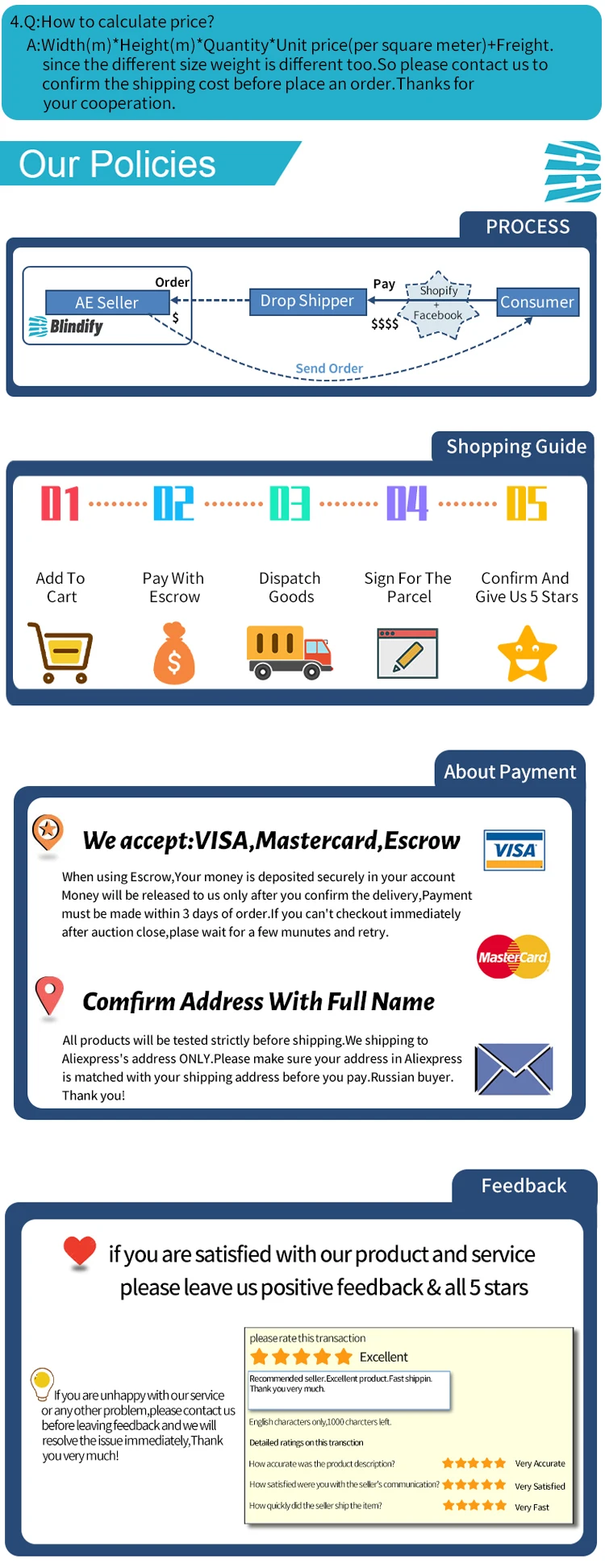 Для индивидуальных жалюзи Мы не принимаем возврат, если жалюзи не являются серьезно дефектными.