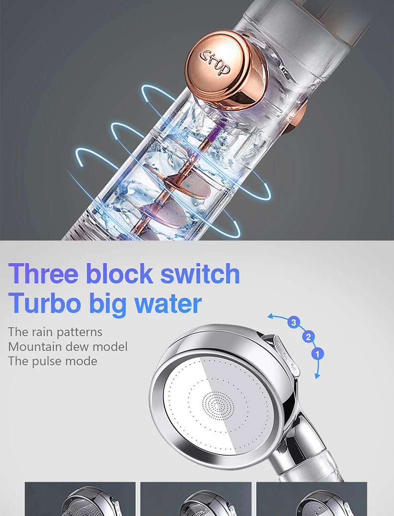 Насадка для душа высокого давления с турбонаддувом и 3 регулируемыми режимами