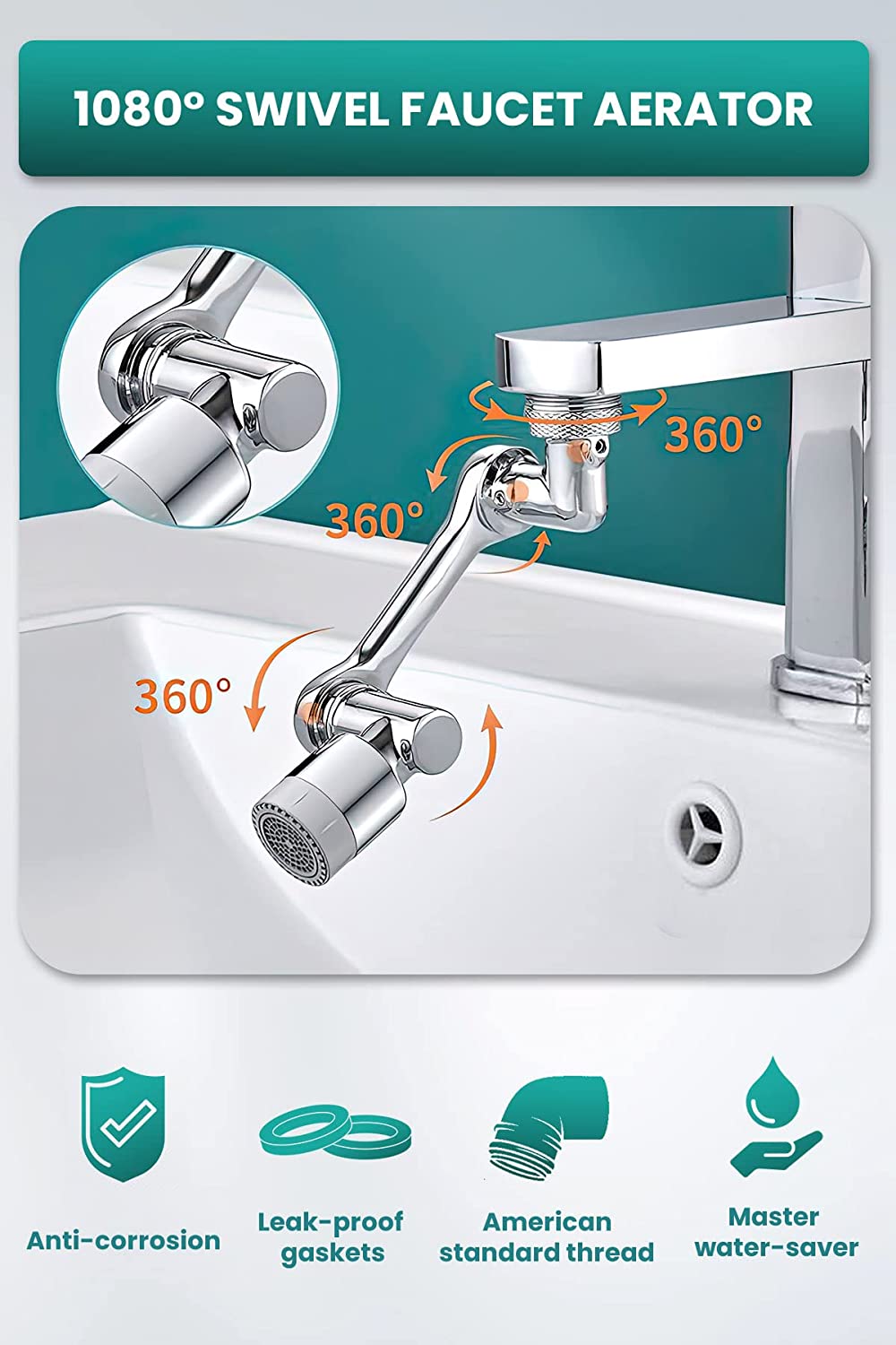 Насадка для крана с поворотом на 1080 градусов