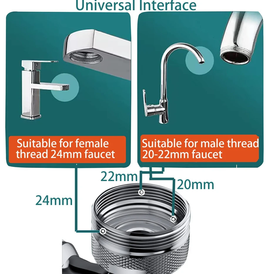 Поворотный переключатель 1080 °: водостойкий фильтр-кран может вращать воду на выходе 1080 °, что делает его более удобным для мытья лица и краску во рту.