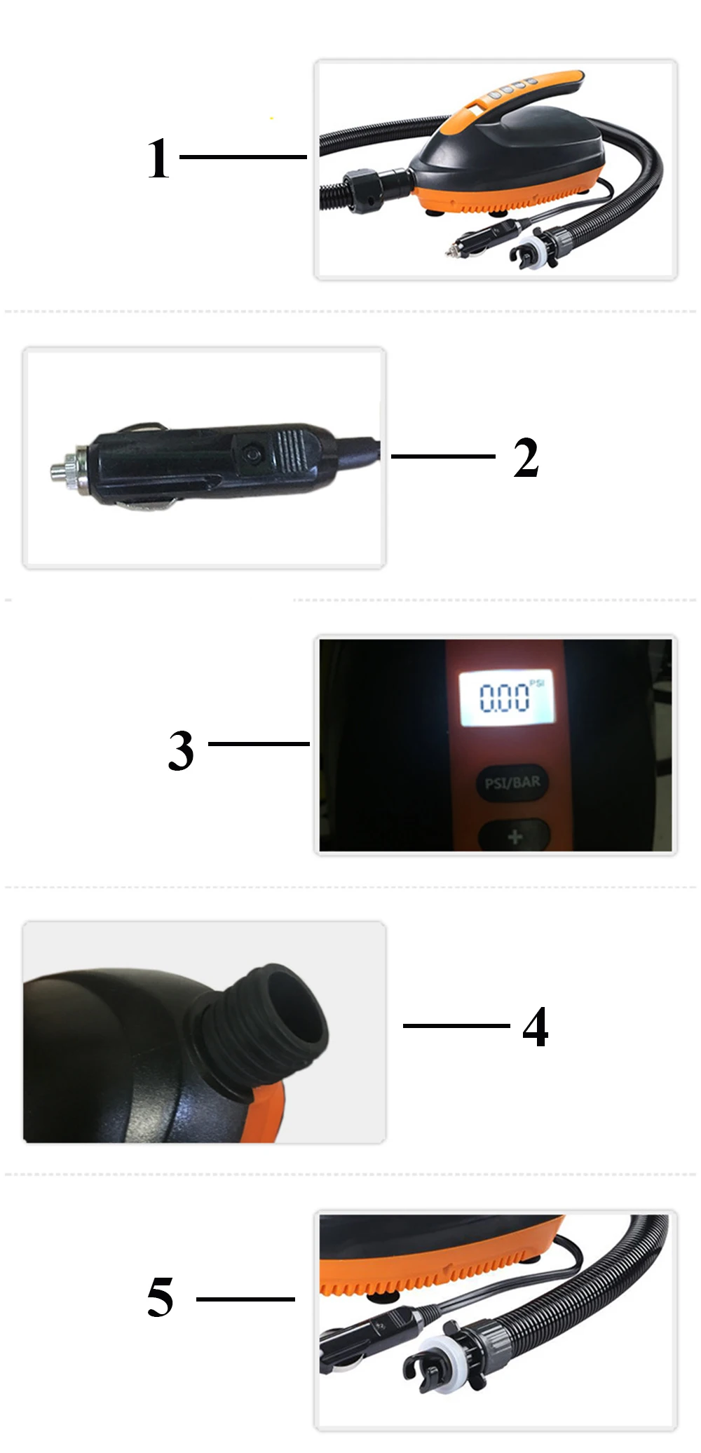 Насос для лодки SUP из ПВХ, 20/16Psi, 12 В, 110 Вт