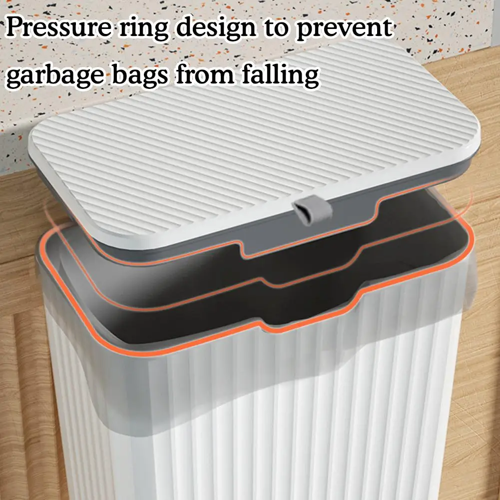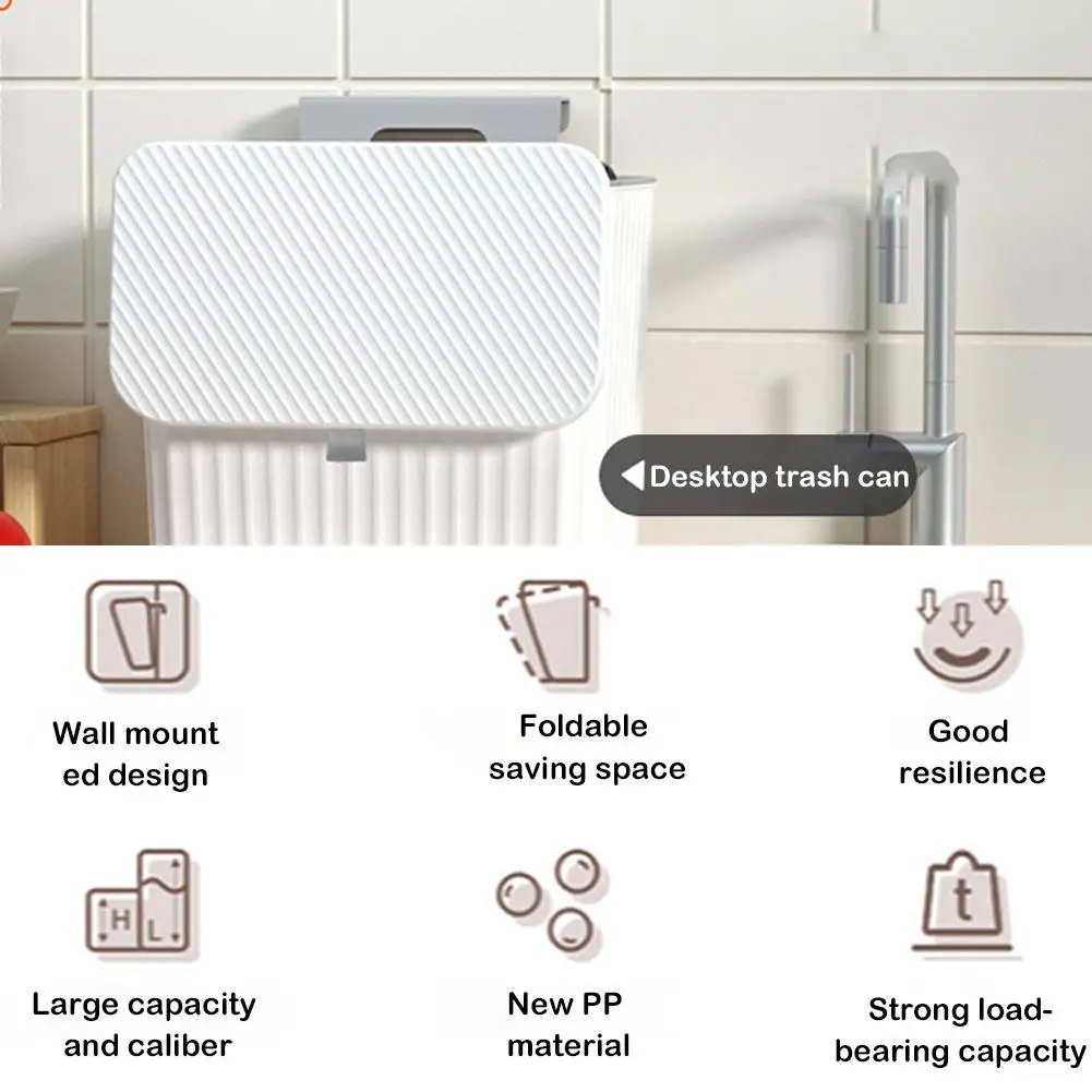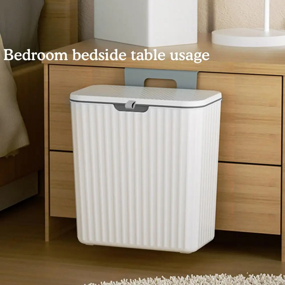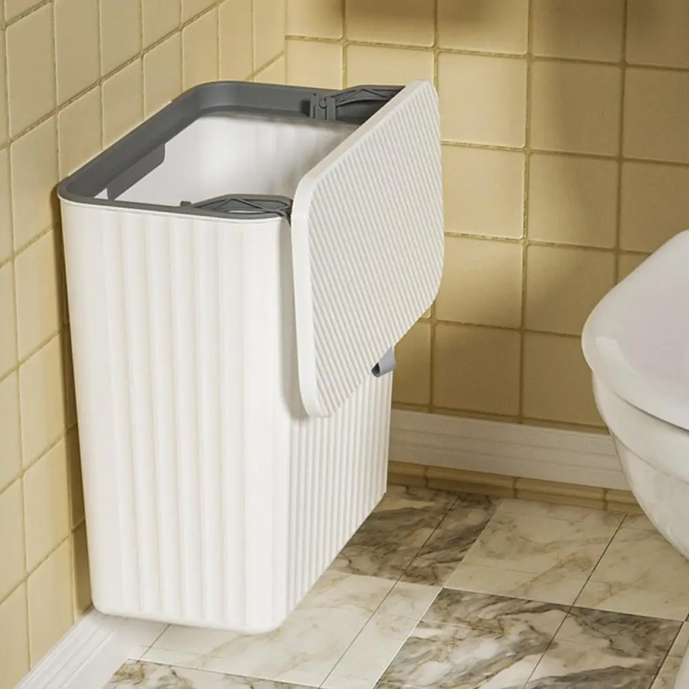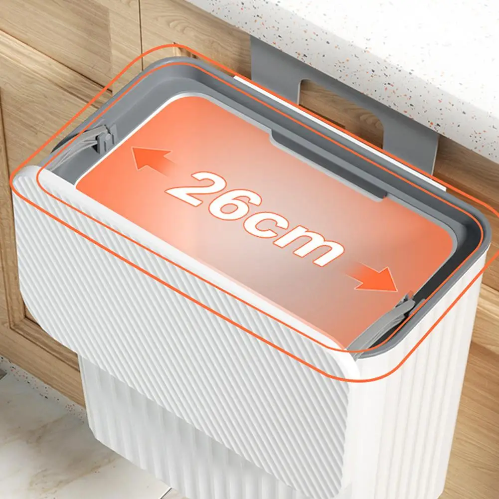 5. Широкое Использование: Этот пластиковый подвесной мусорный бак идеально подходит для компактных или узких помещений, таких как ванная комната, кухня, спальня, гостиная, офис, общежитие и другое пространство. Вы можете разместить его там, где вам нужно, чтобы обеспечить удобный и простой способ утилизации мусора.
