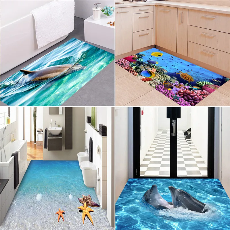 Океан Дельфин Морская звезда Пол Стикер Декор Гостиная Пейзаж напольная плитка фрески стикер водостойкие обои для ванной
