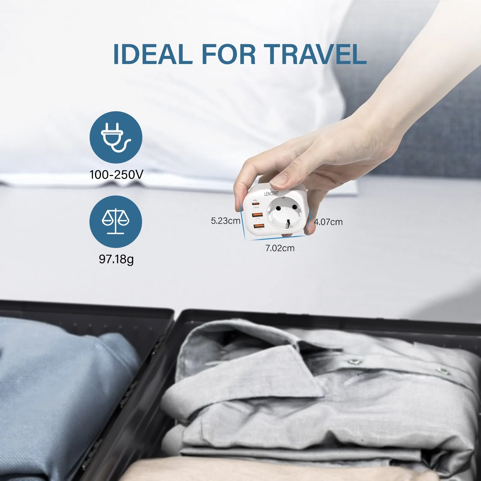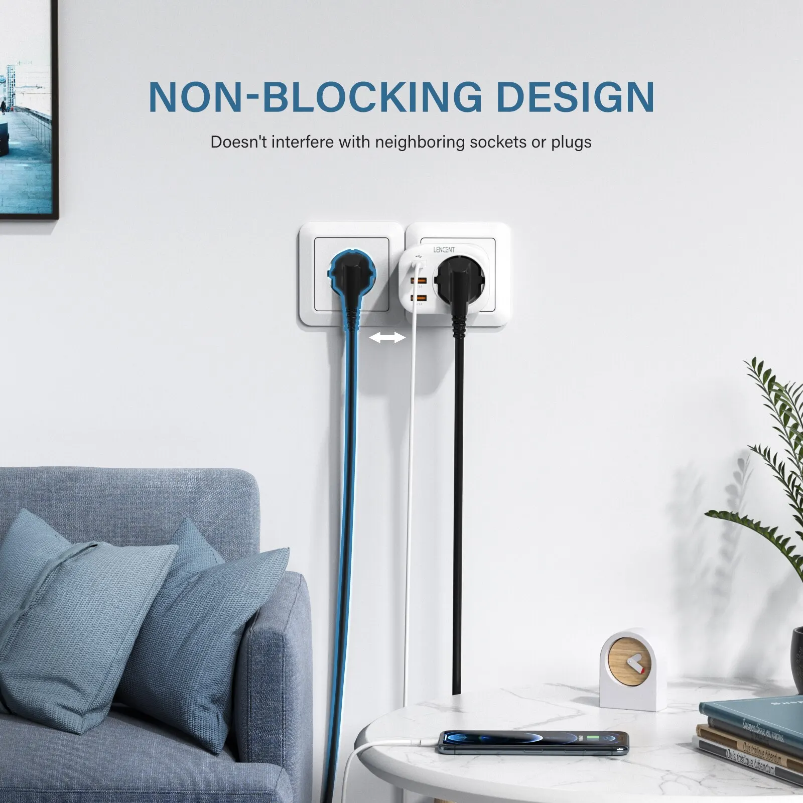 Настенная розетка-удлинитель LENCENT с 1 розеткой переменного тока 2 USB QC3.0 и 1 Type C PD 20 Вт