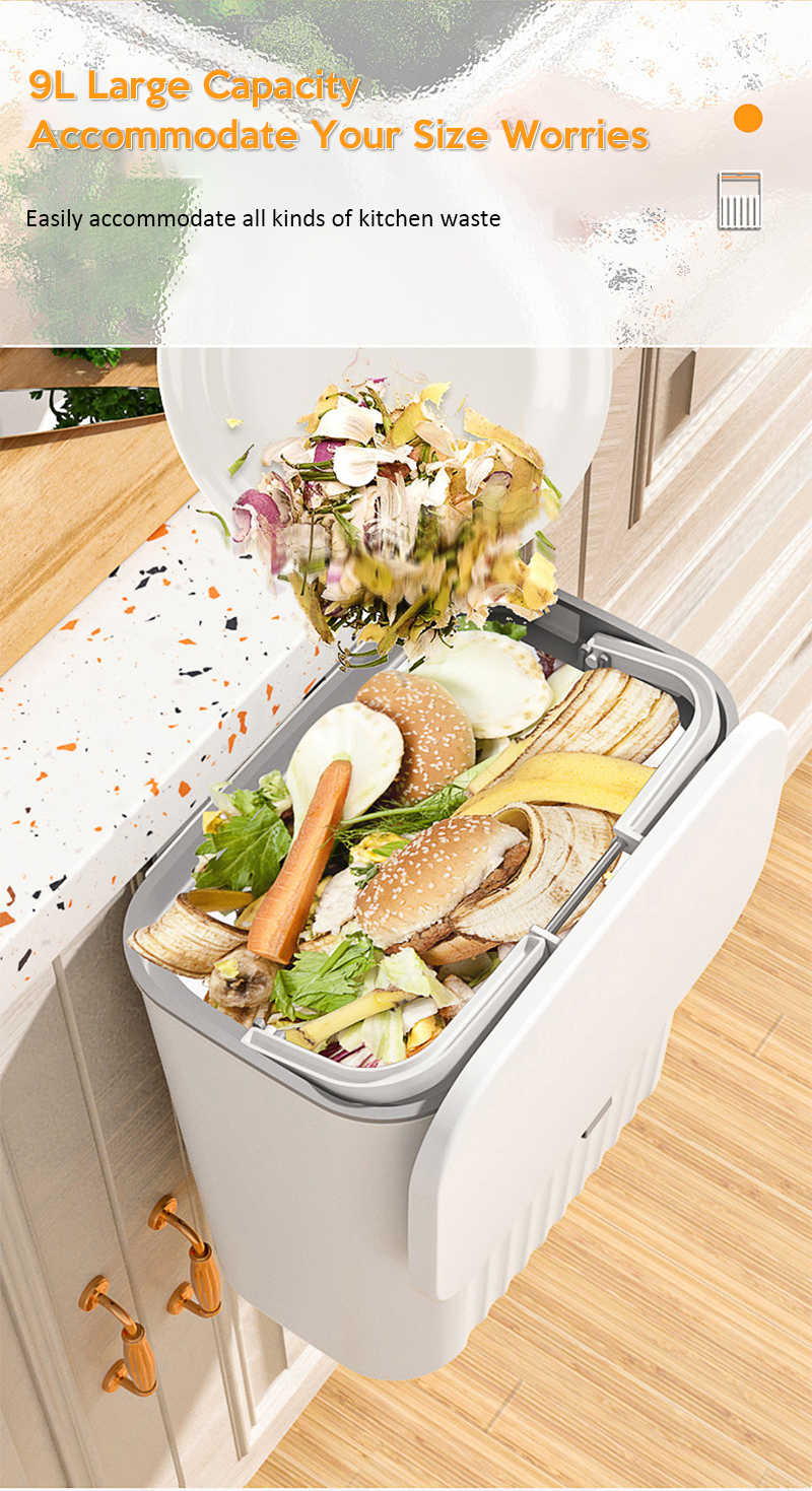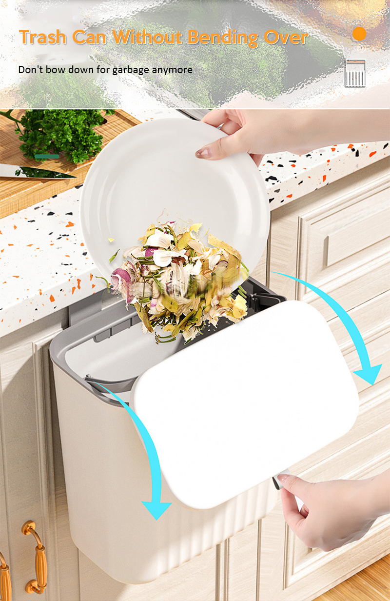 Когда вы готовите свежие продукты, нарезаете и нарезаете кубиками, вам не нужно постоянно открывать и закрывать дверцу шкафа мокрыми руками, по сравнению с мусорным ведром под раковиной.