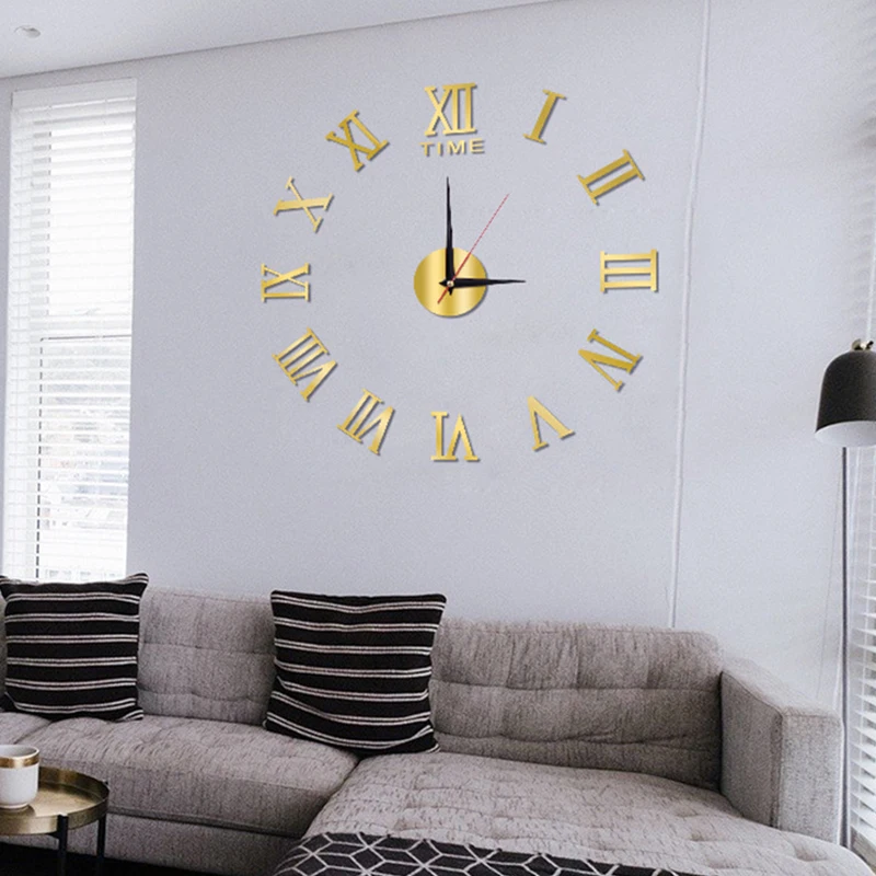 Настенные часы с римскими цифрами, 3D декор в современном стиле для гостиной, акриловое зеркало «сделай сам», кварцевые бесшумные безрамочные