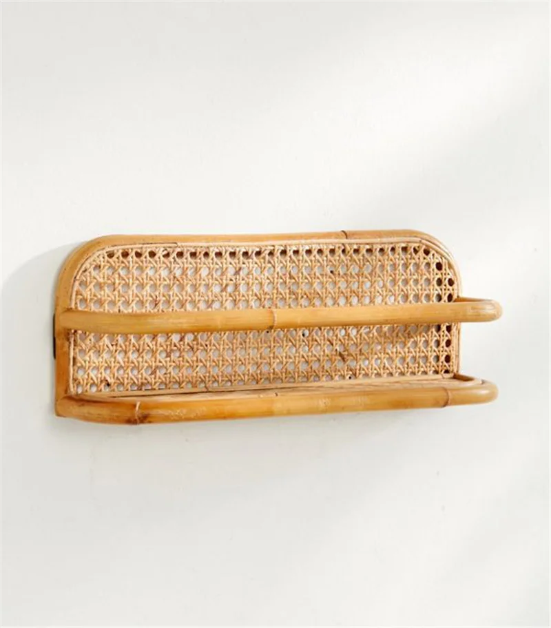 Настенные крючки из ротанга, органайзер для детской одежды, вешалка для одежды, шляпы, подвесной крючок, винтажная настенная книжная полка из ротанга, Декоративная вешалка для комнаты