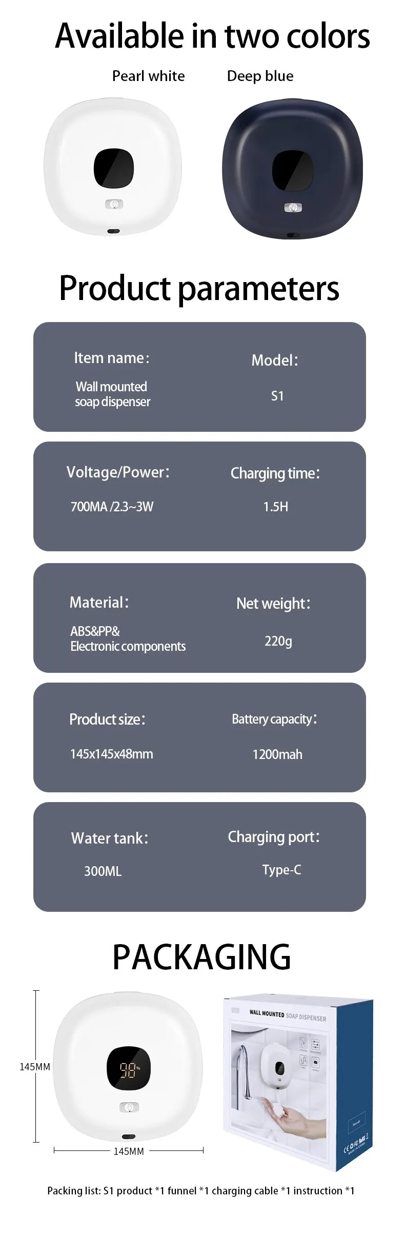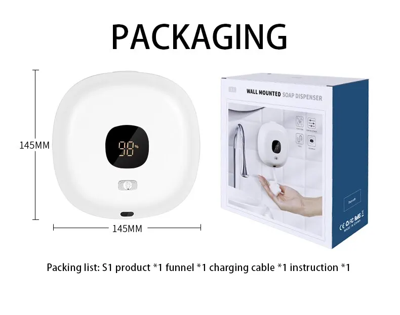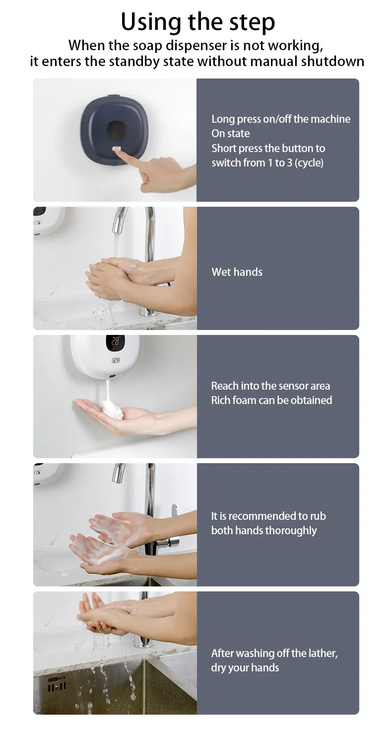 Настенный автоматический диспенсер для мыла, умный дозатор мыла с бесконтактным светодиодным дисплеем и USB-зарядкой, для ванной комнаты