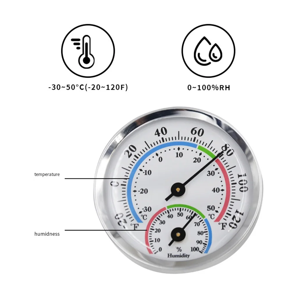 【Небольшой размер】 размером всего 2,28 дюймов, этот гигрометр можно использовать как в качестве внутреннего украшения, так и в качестве наружного инструмента.