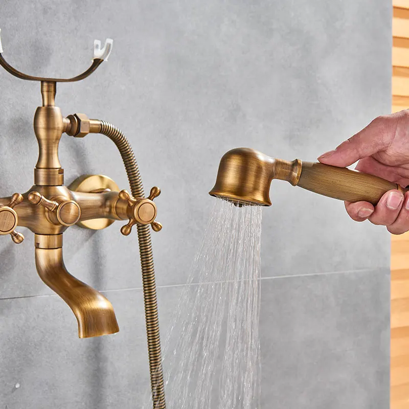 Настенный латунный Смеситель для душа и ванны, носик, двойные ручки, тип телефона смеситель для горячей и холодной воды, золотистый шар, матовая античная латунь
