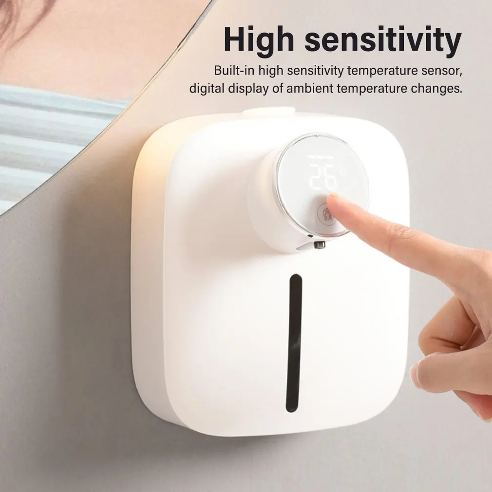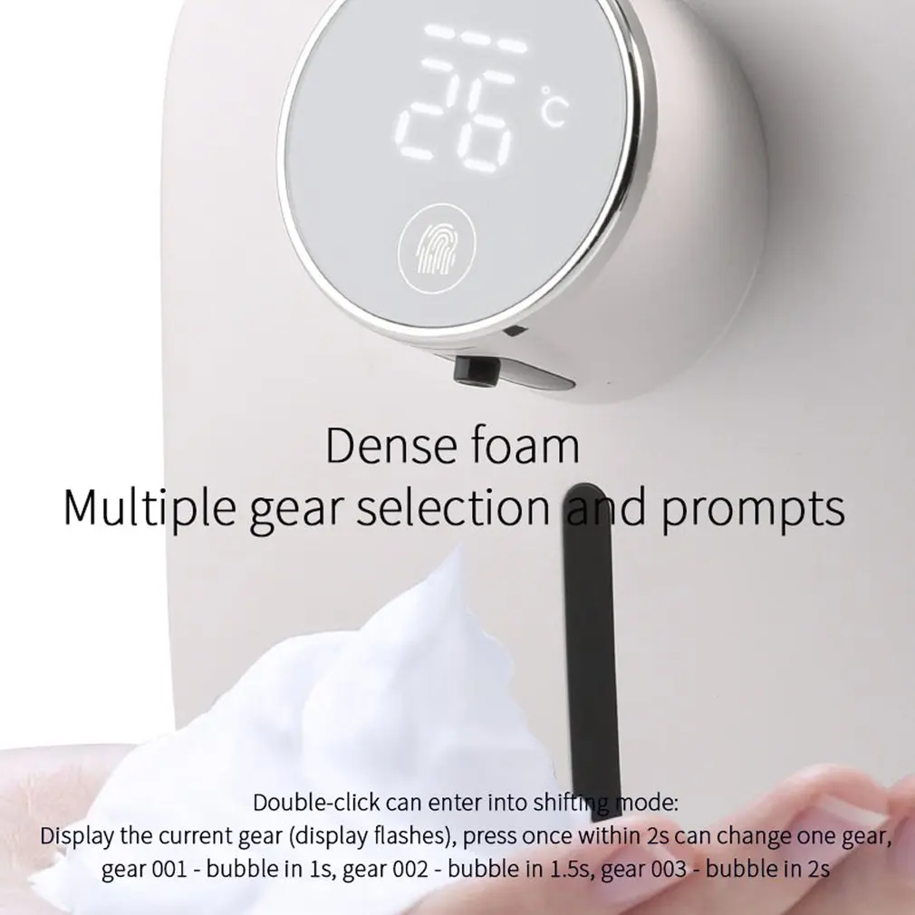 5. Плотная пена: точно Контролируйте коэффициент смешивания мыла и воздуха, чтобы сделать пену более плотной. Эффективный микродвигатель, низкое энергопотребление, более длительный срок службы батареи. Настенный автоматический дозатор мыла имеет функцию трехступенчатой регулировки, которая может отображать температуру.