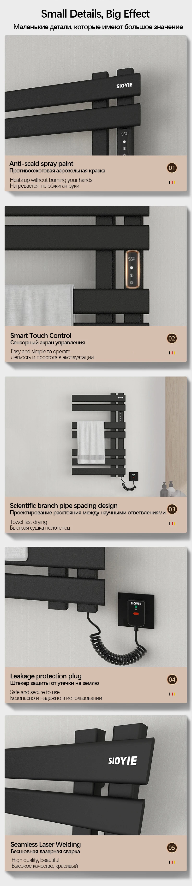 Tip: The use of electric towel racks, in addition to allowing you to use dry towels every day, can also effectively reduce the risk of breeding bacteria in the bathroom's humid environment. In addition, you can also dry baby clothes, bath towels, etc.