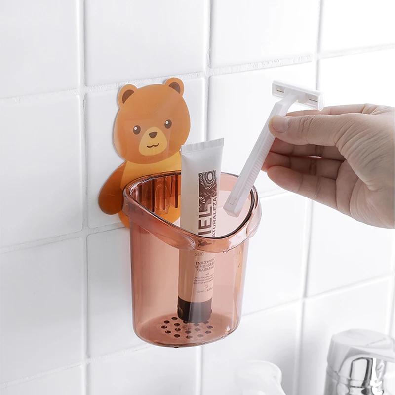 Настенный стеллаж с изображением медведя, чашка держатель для зубной щетки, для хранения без отверстий, аксессуары для ванной комнаты, Органайзер