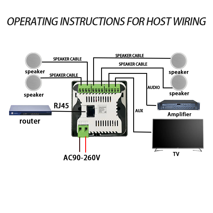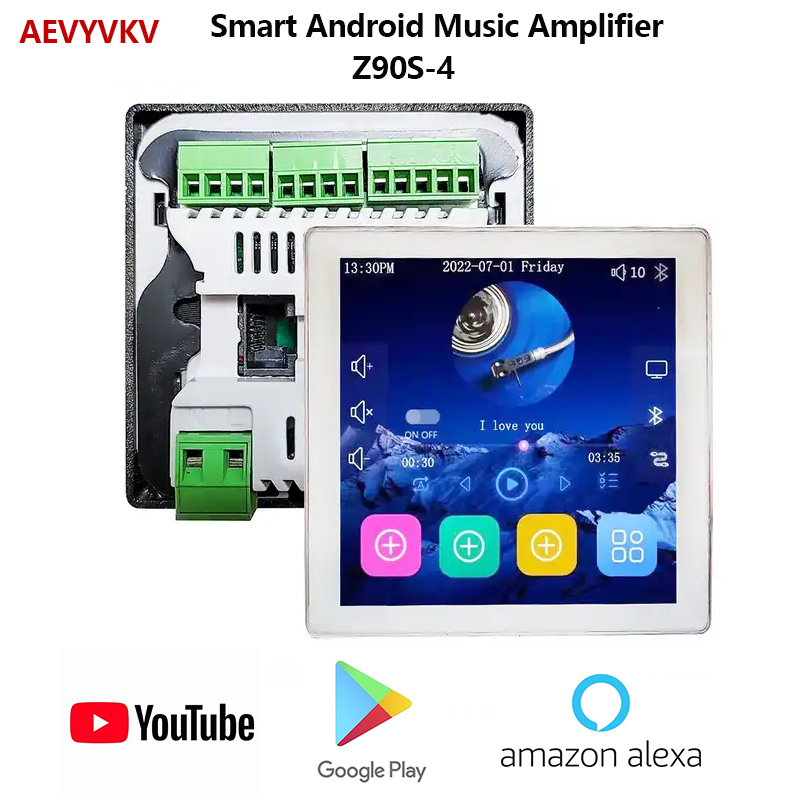 Настенный усилитель звука для домашнего кинотеатра, 4-дюймовый сенсорный экран, Android 10,0, поддержка голосового управления, дистанционного управления, музыкальный плеер