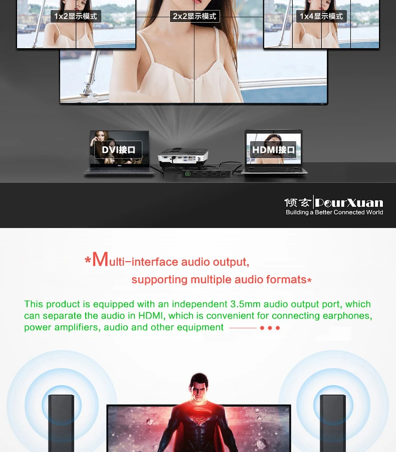 Настенный видеоконтроллер 2x2 HDMI DVI HD TV 1080P 60 Гц 1x2, 1x3, 1x4, 2x1, 3x1, 4x1, 2x2 многоэкранный процессор 4 ТВ комбинированная коробка