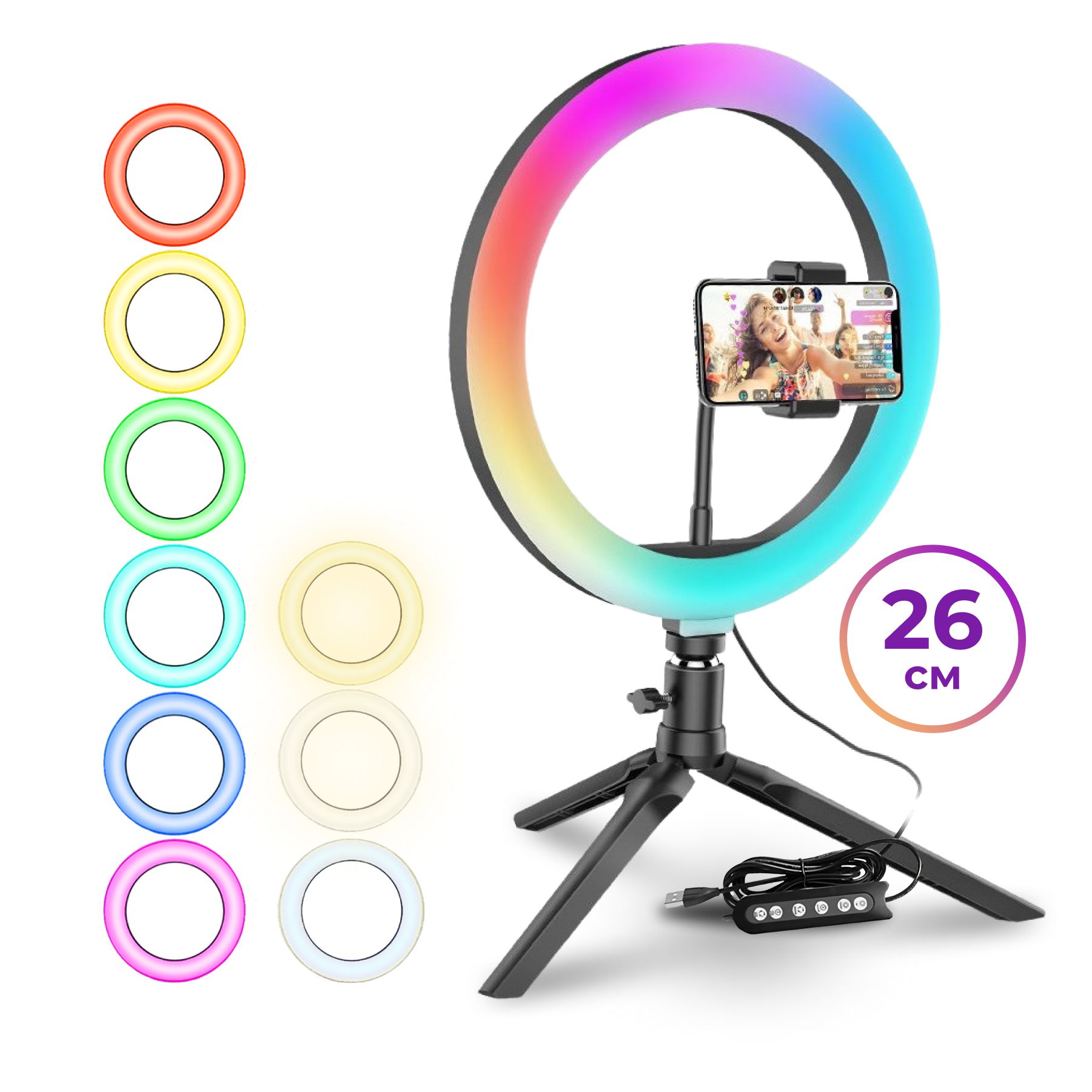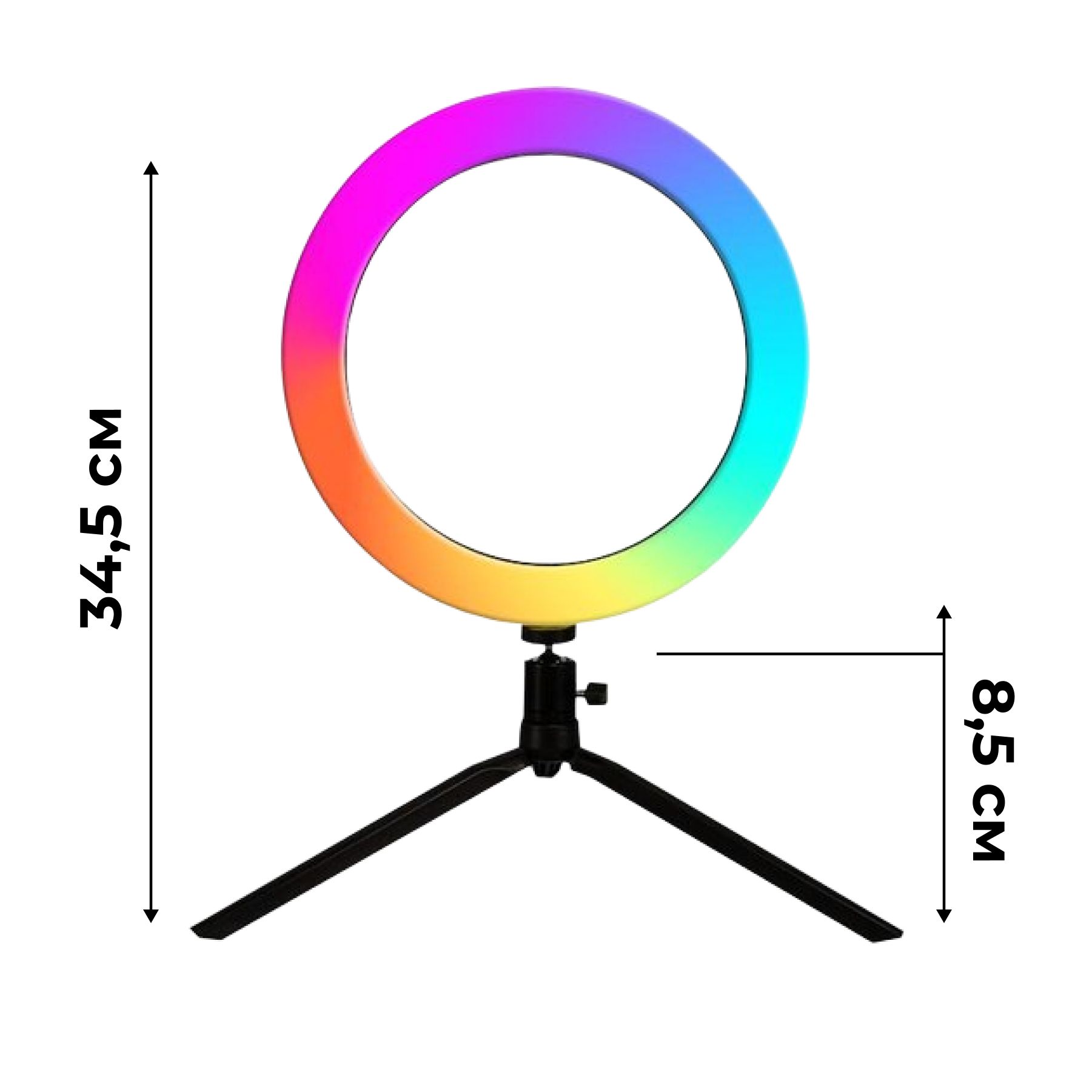 Настольная кольцевая LED лампа/ RGB 26см/со штативом и держателем для телефона