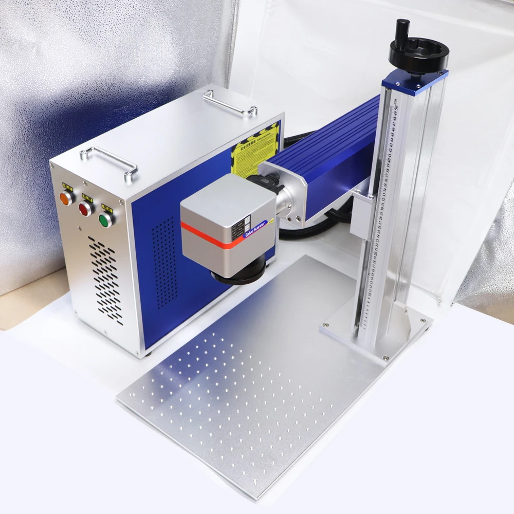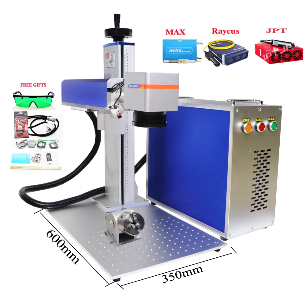 Настольная лазерная маркировочная машина с раздельным волокном с поворотным опциональным гравировальным станком JPT или Raycus 20W 30W 50W или 60W 70W 100W