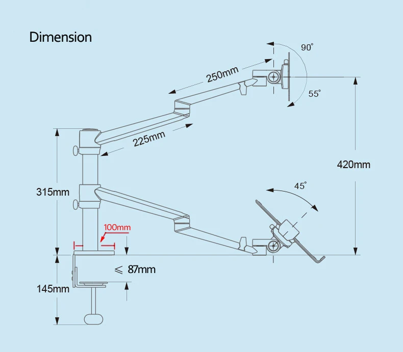 2) Технические параметры ------- Эргономичная настольная подставка для ноутбука 10 "-17" + Держатель рабочего стола монитора 10 "-32"