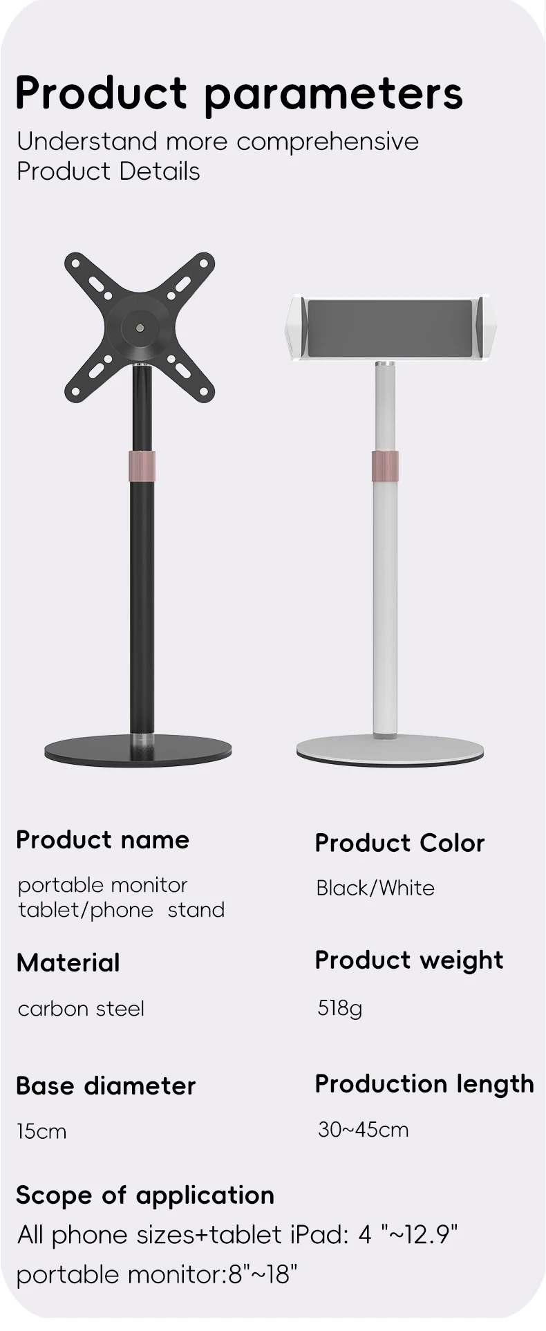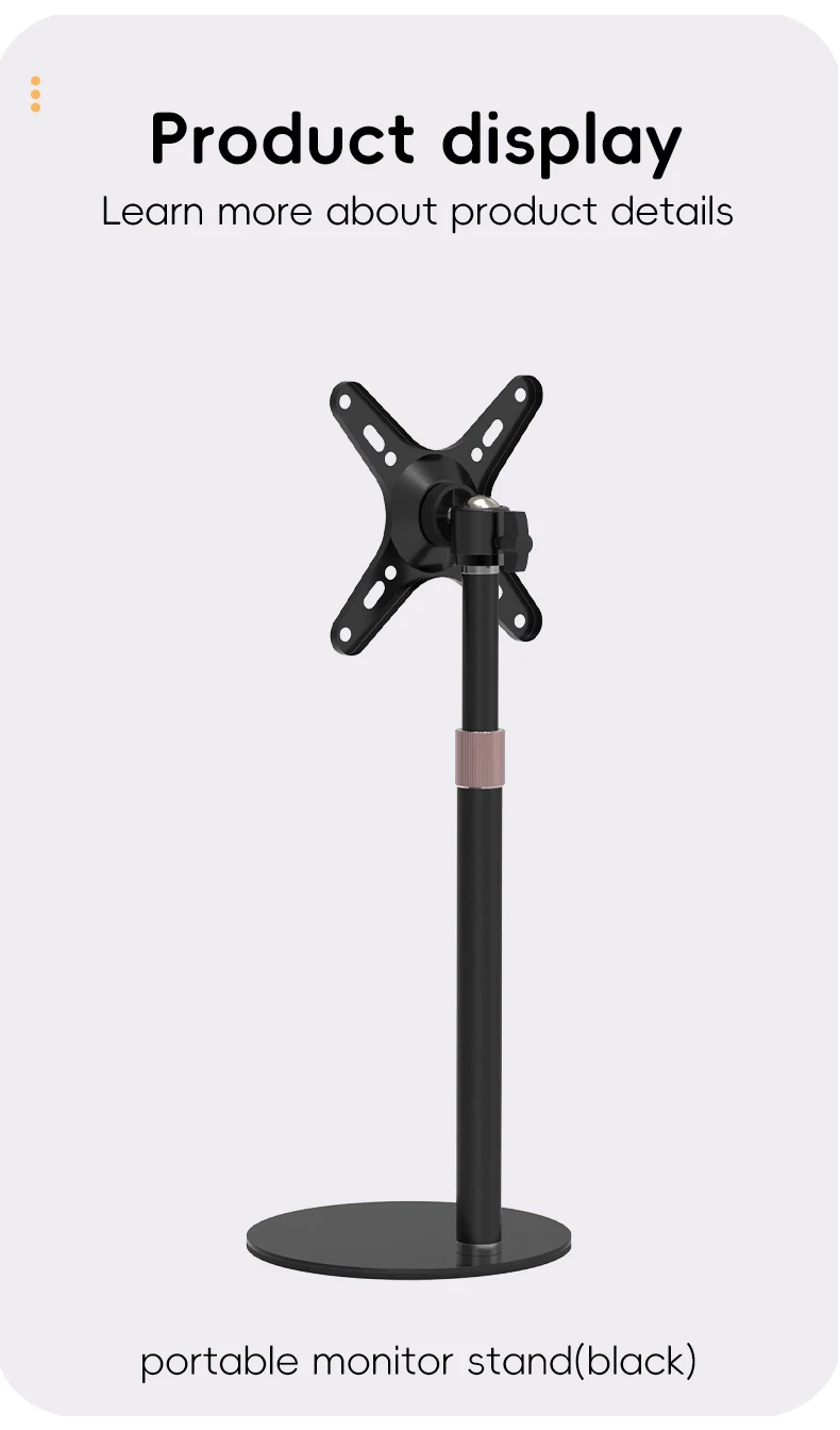 ТЯЖЕЛЫЙ МОНИТОР СТЕНД ДЛЯ СВОБОДНОЙ СВОДЫ-Это прочное основание, изготовленное из прочного стального материала, достаточно тяжелое и широкое, чтобы поднимать и наклонять монитор весом до 17,6 фунта и максимальным VESA 100x100 мм, предотвращение опрокидывания или падения монитора.