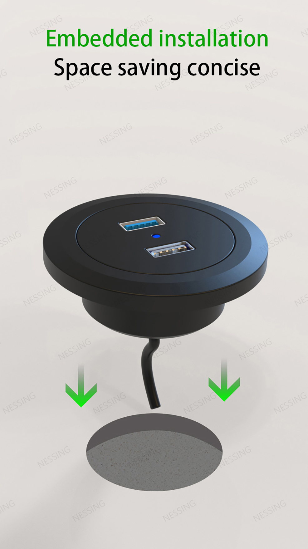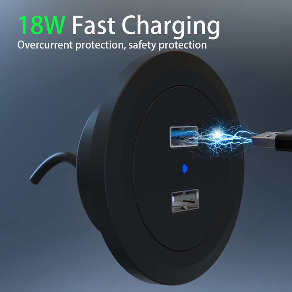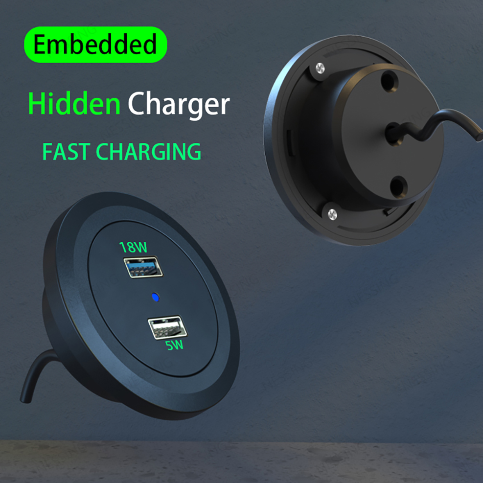 Настольное отверстие, встроенное 18 Вт QC3.0 USB, двойная розетка, концентратор, скрытое зарядное устройство, настольная мебель, офисный невидимый мобильный телефон, быстрая зарядка