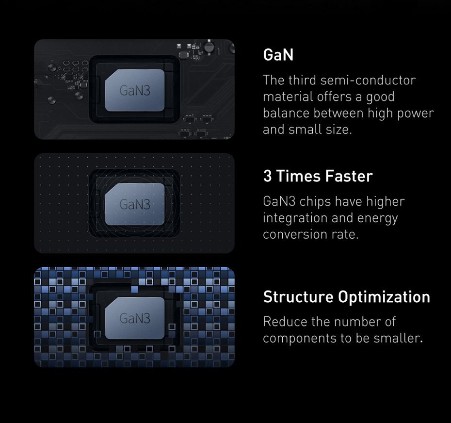 GaN3 chips have higher integration and energy conversion rate.