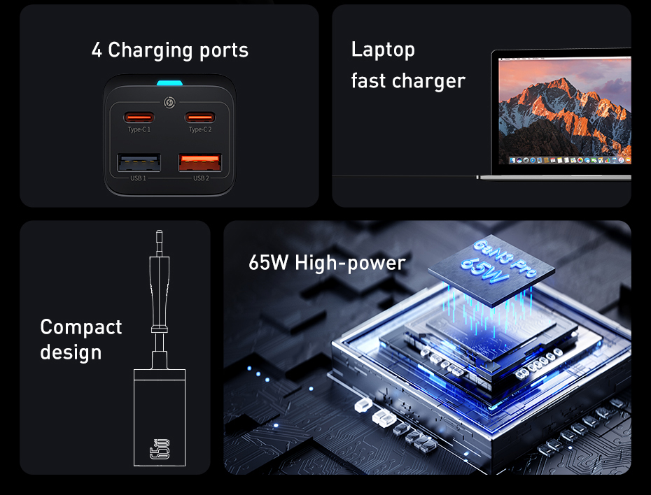 Subit for 15 GaN 65W Desktop USB Charger 100W 4-Port