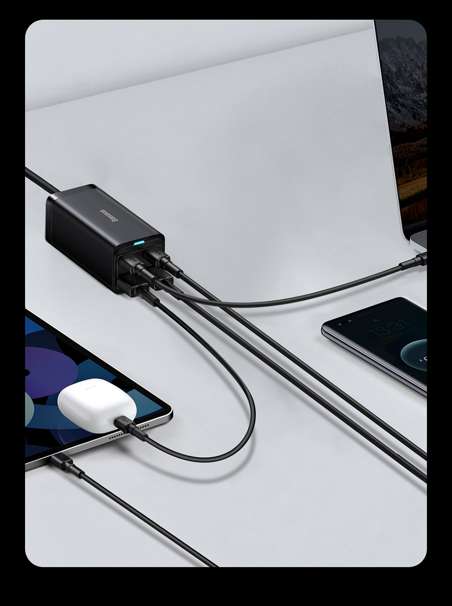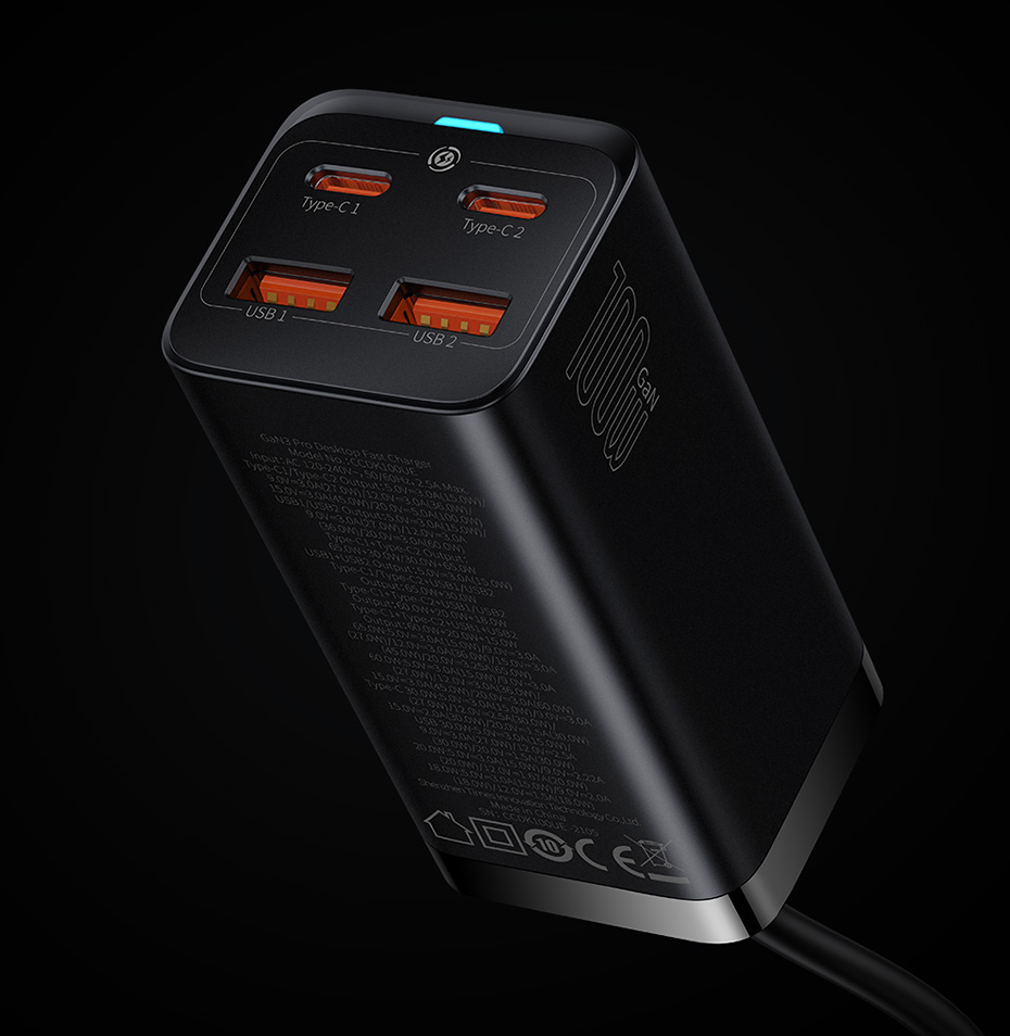 Настольное зарядное устройство Baseus GaN 100 Вт/ 65 Вт с функцией быстрой зарядки