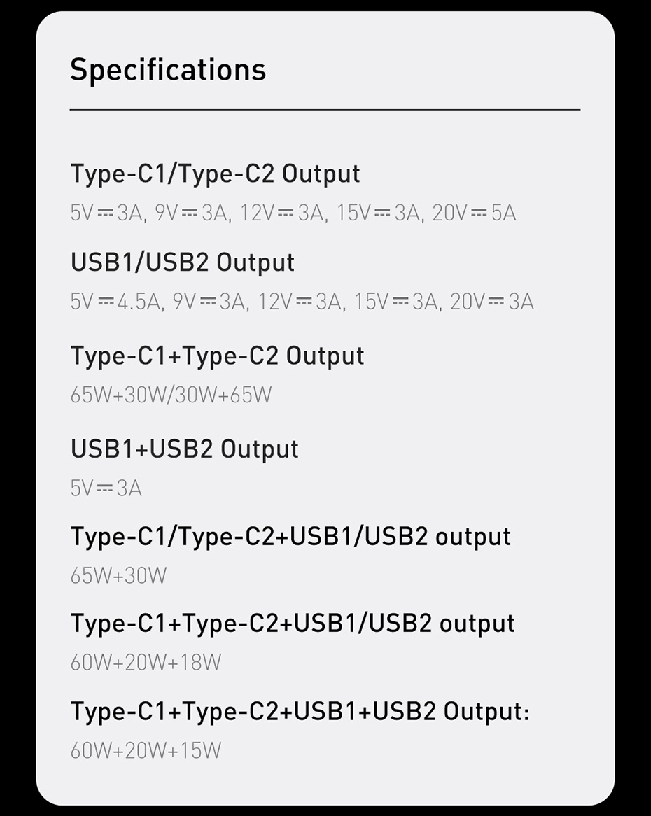 Type C1/Type C 2+USB 1 Output 60W+5W