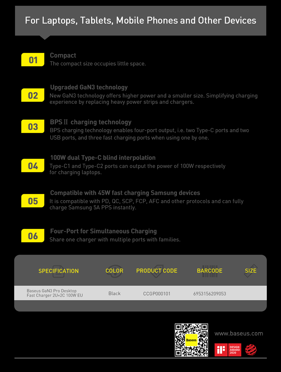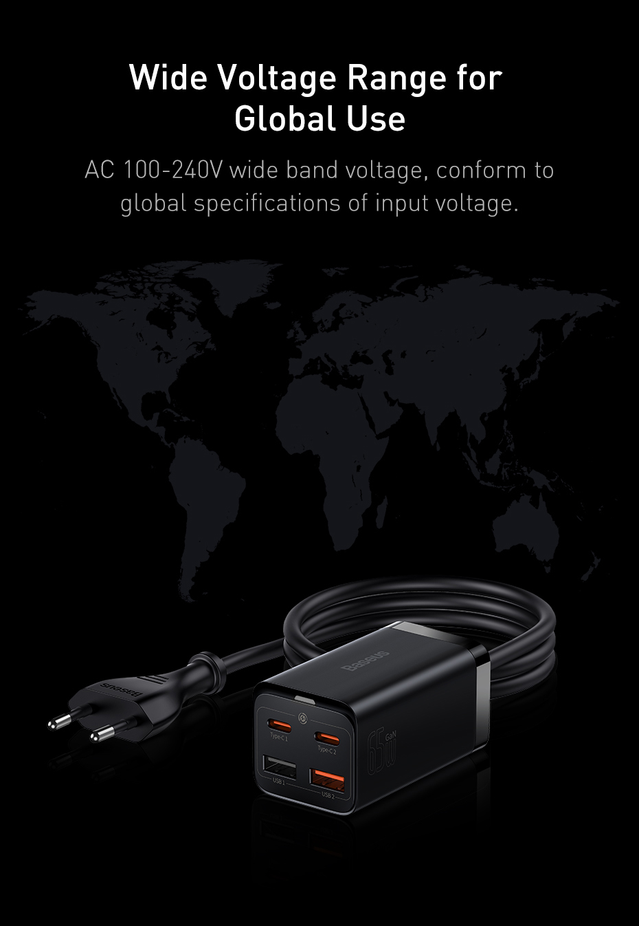 Type Baseus EU Plug 65W/100W GaN Charger,100W GaN Pro Black Chagrer
