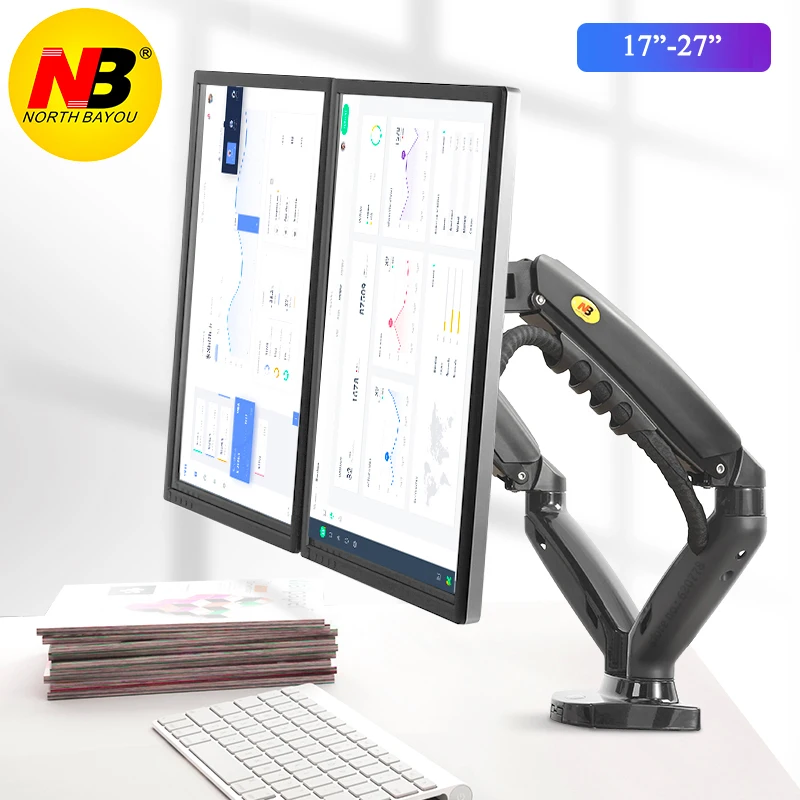 Настольный держатель NB F160 с газовой пружиной на 360 градусов, 17-27 дюймов, двойной монитор, рукоятка с полным движением, Стандартная нагрузка 2-9 кг каждый
