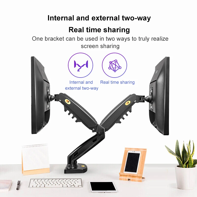 F160N двойное настольное ЖК-крепление для экранов разработано специально для людей, которым нужны мульти-экраны и мульти-задачи для повышения их продуктивности в офисных работах, финансах, дизайне и IT. Добавили, что конструкция шарнирного соединения с гравитационной пружиной обеспечивает легкое положение, чтобы исключить Серый угол обзора.