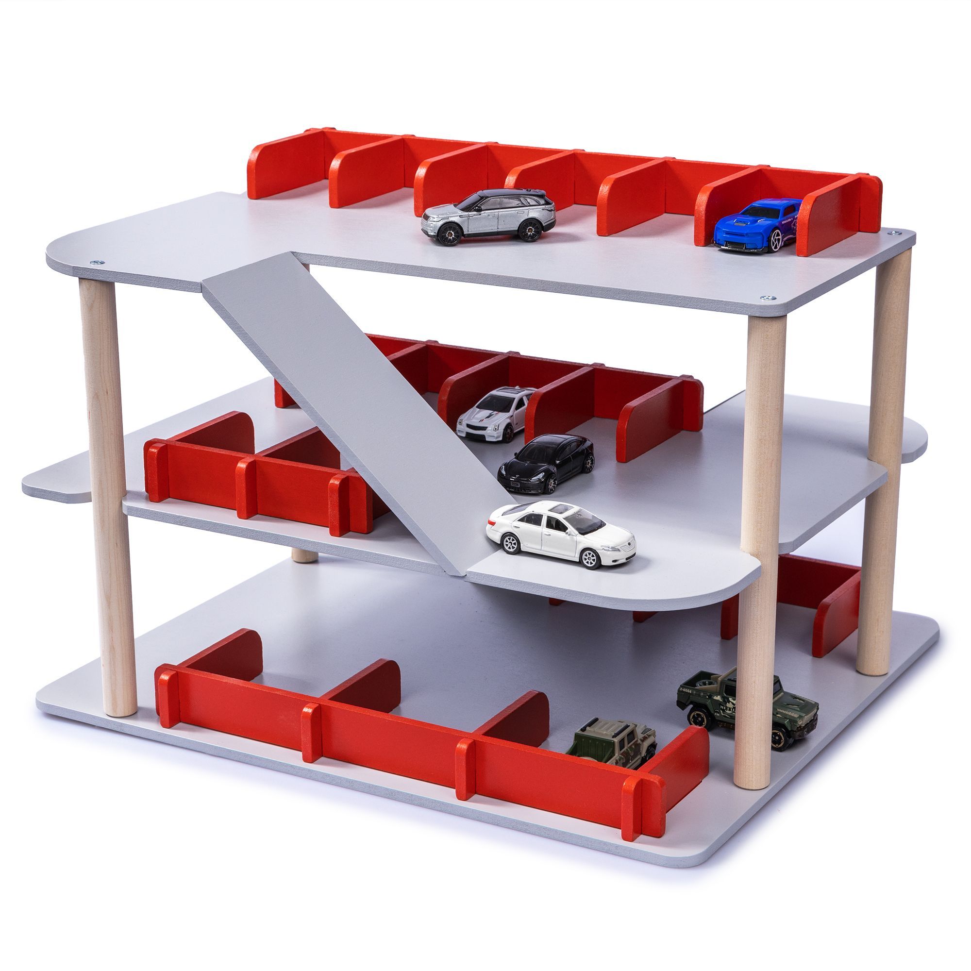 Многоэтажный гараж для машинок позволит не только порадовать ребёнка и украсить детскую комнату, но и приучить к порядку. После игры собирайте все игрушечные автомобили и расставляйте их на парковке. Повторяйте этот ритуал каждый день, пока уборка машинок не войдёт в привычку.